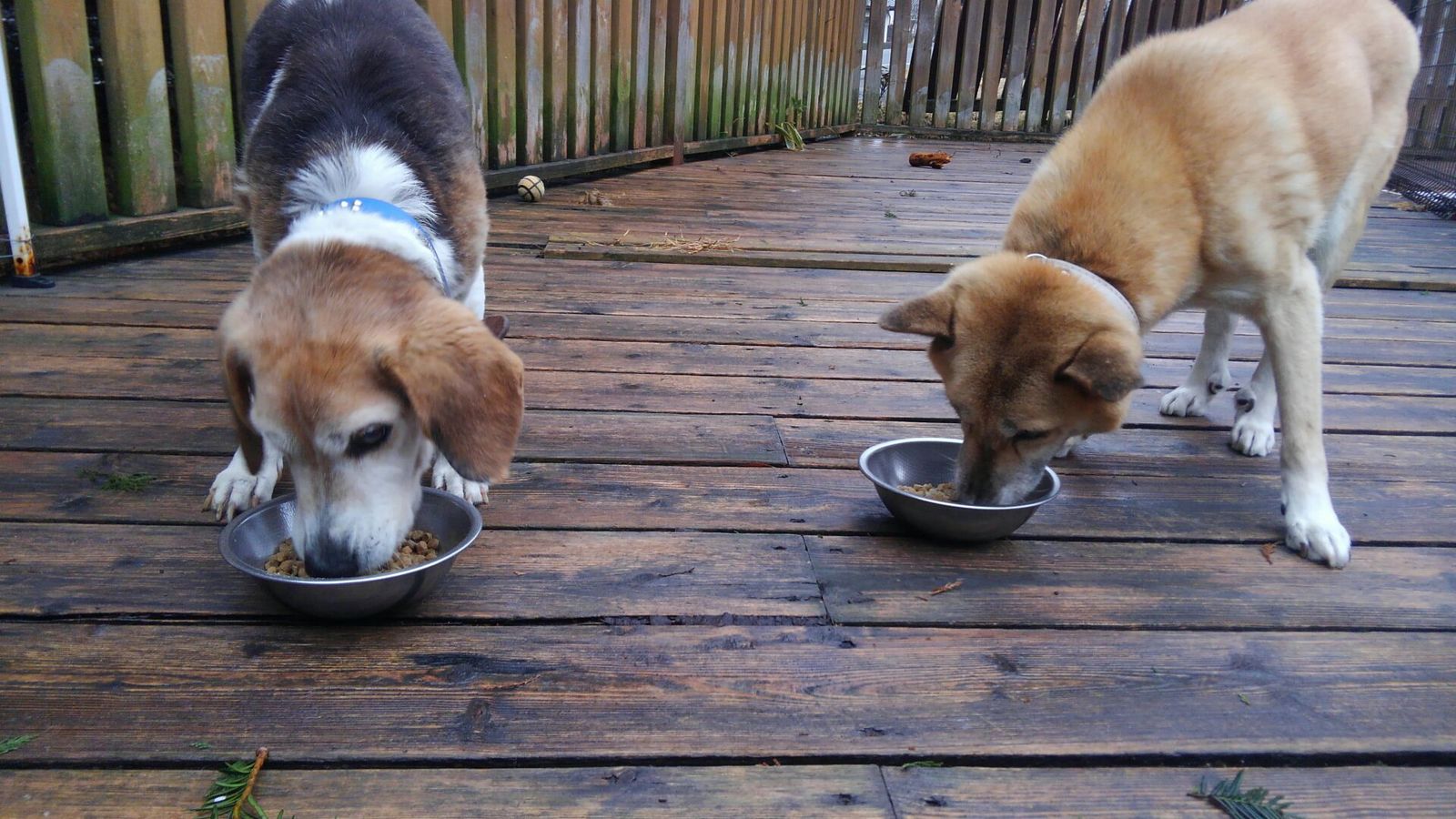 生涯預かりミックスのんちゃんとダックスロッキー君とティラミス君、しっかり完食しました。
