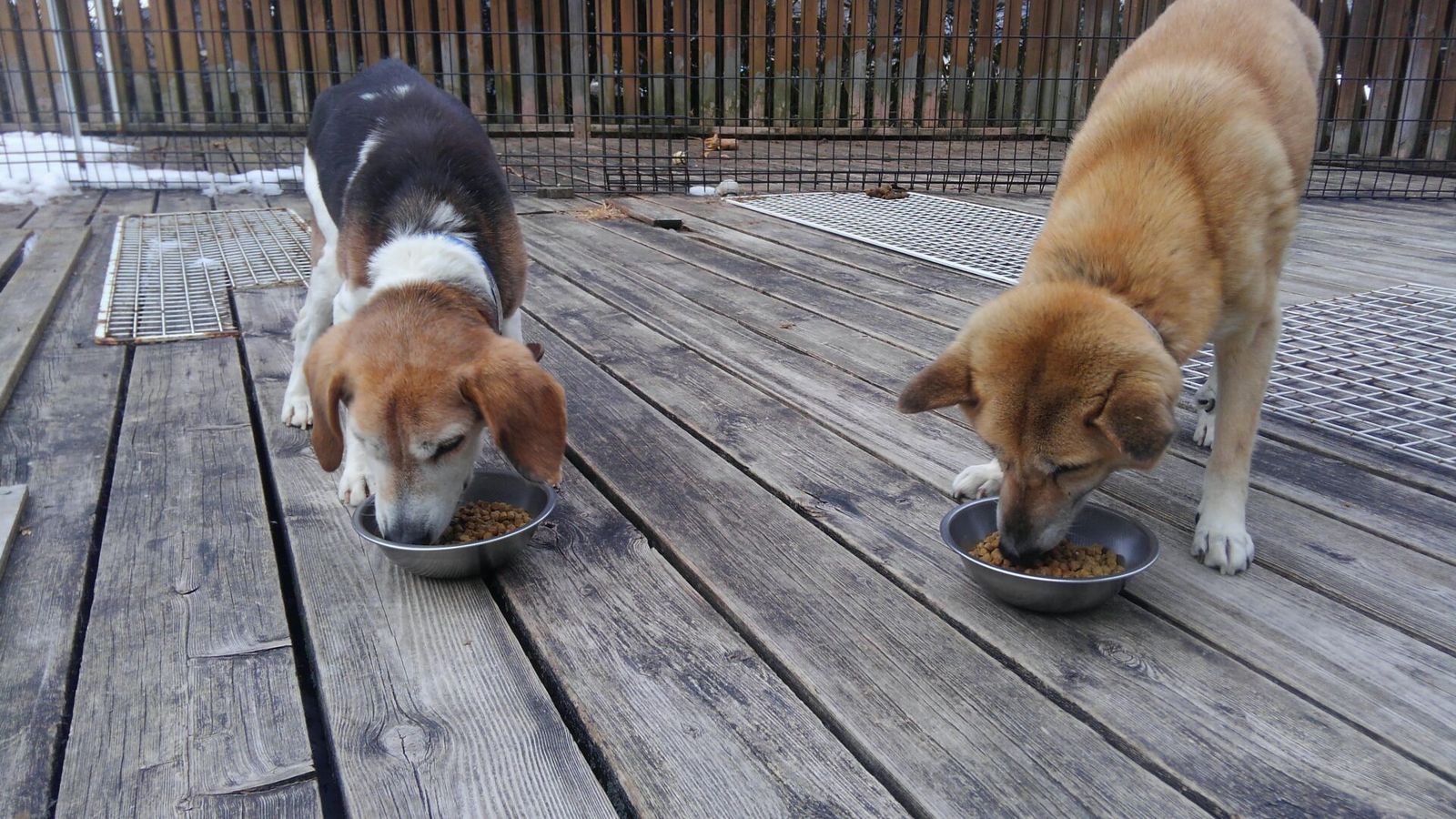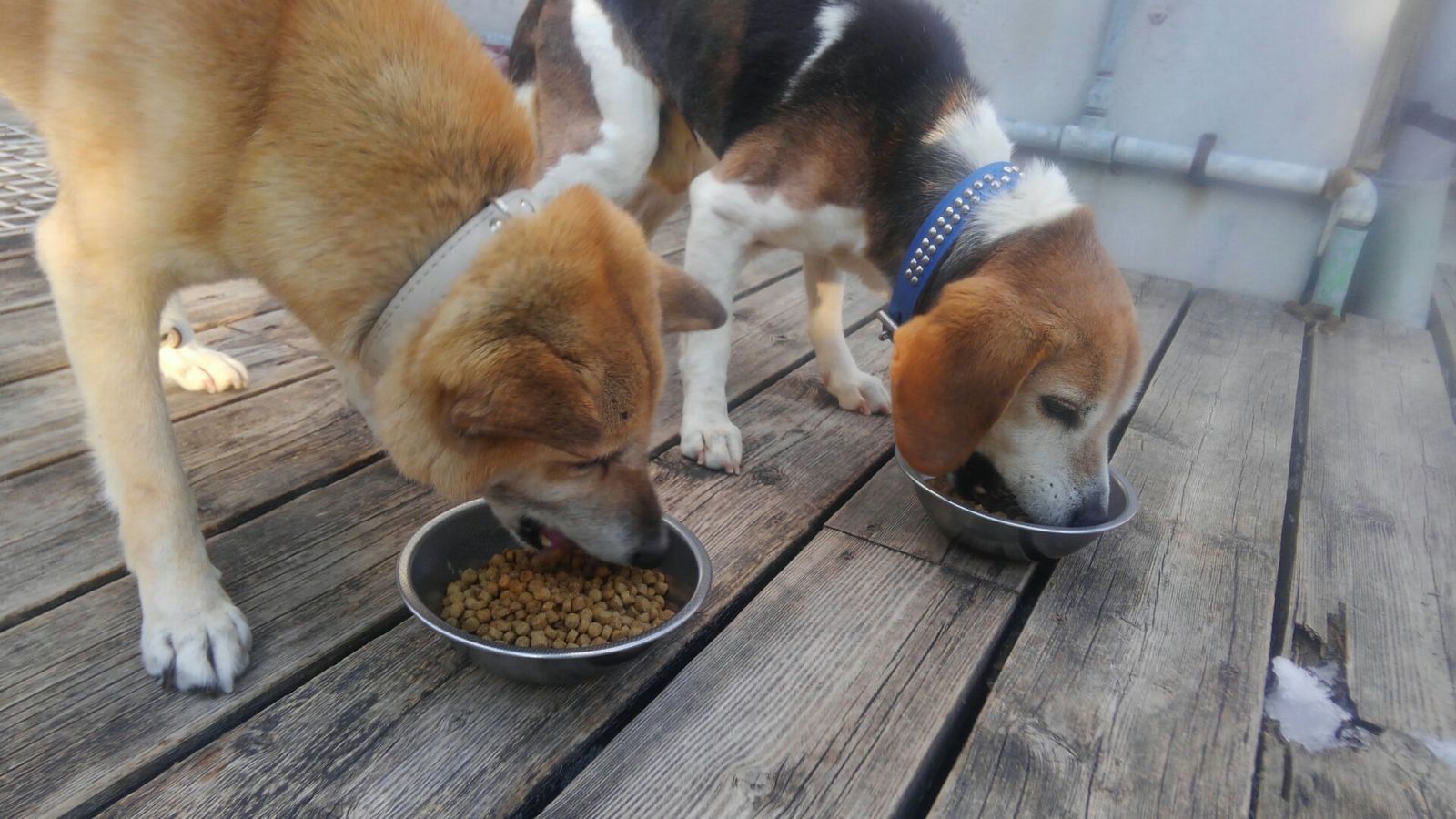 アラスカンマラミュートのカイ君とハナちゃん、しっかり完食しました。