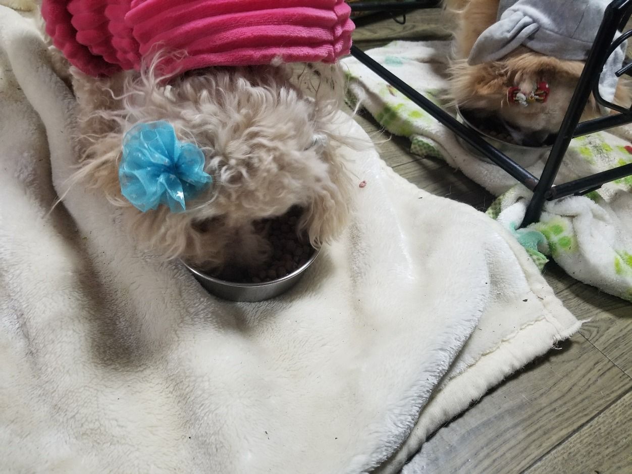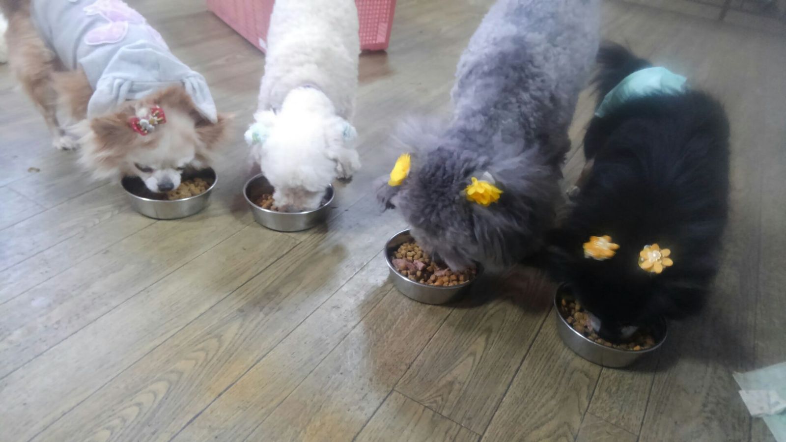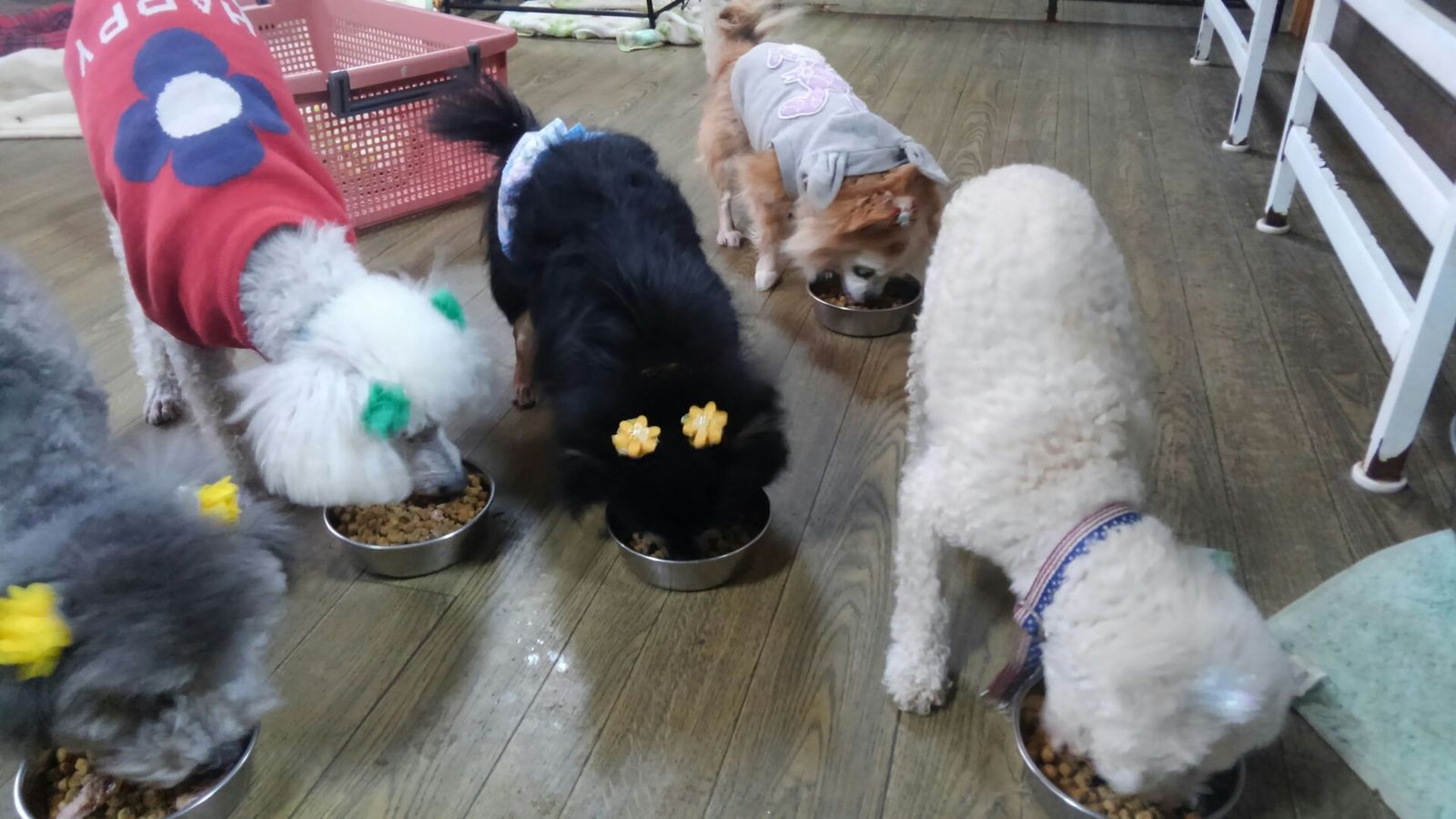 生涯預かりミックスキュウちゃんとシーズーココ君、トイプーテディ君とベラちゃん、しっかり完食しました。