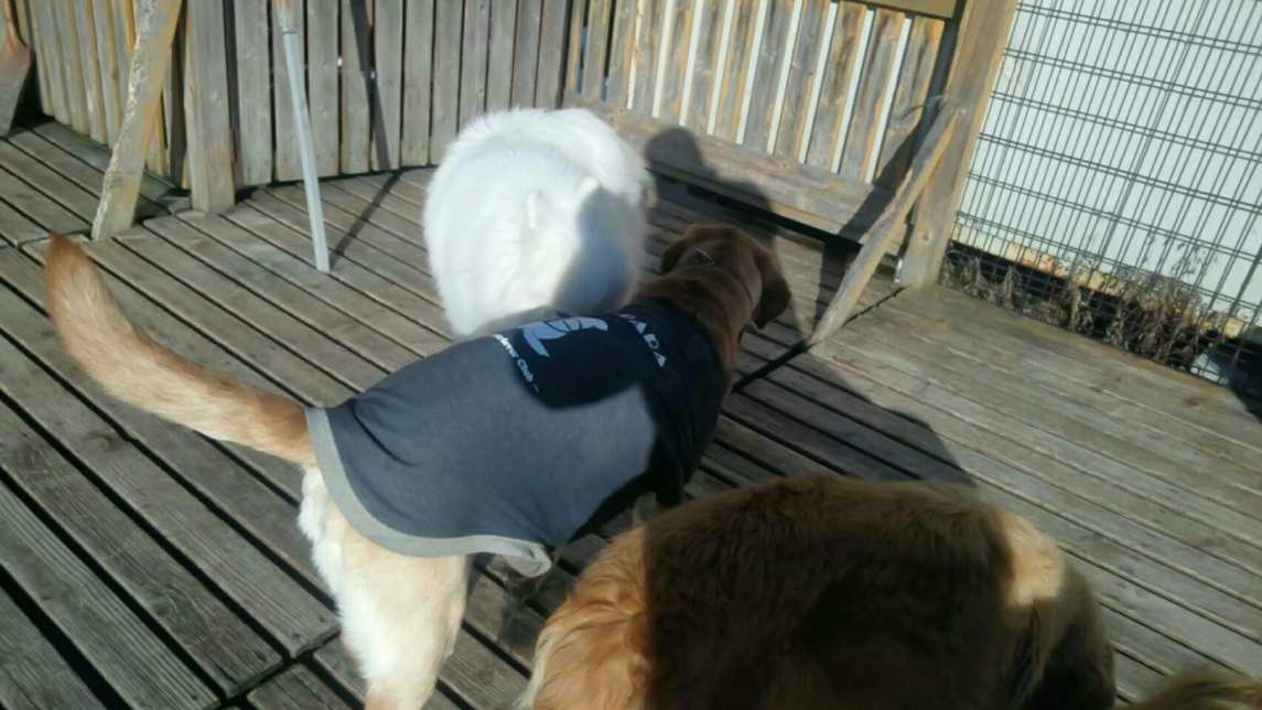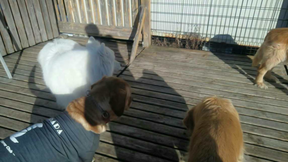 いつもはしつこくするラブラドールみかんくんがハナちゃんに追いかけられてタジタジです。
