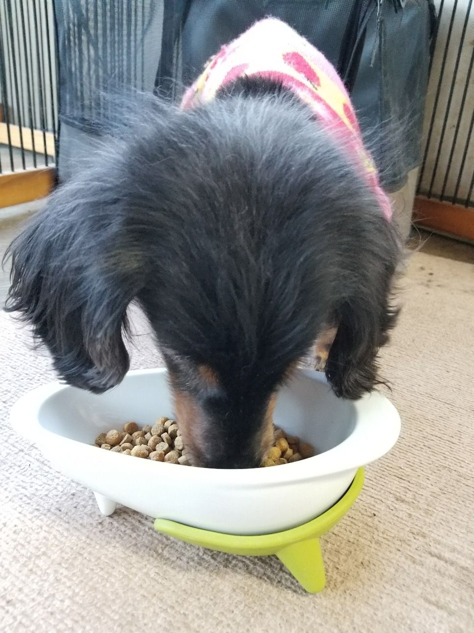 生涯お預かりダックスロッキーくん、ミックスのんちゃんしっかり完食しました。