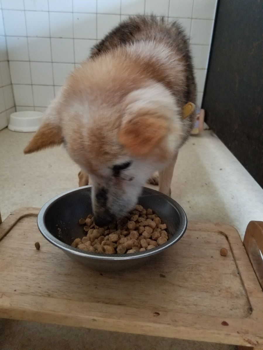 生涯お預かりミックスちびちゃん、キュウちゃんしっかり完食しました。