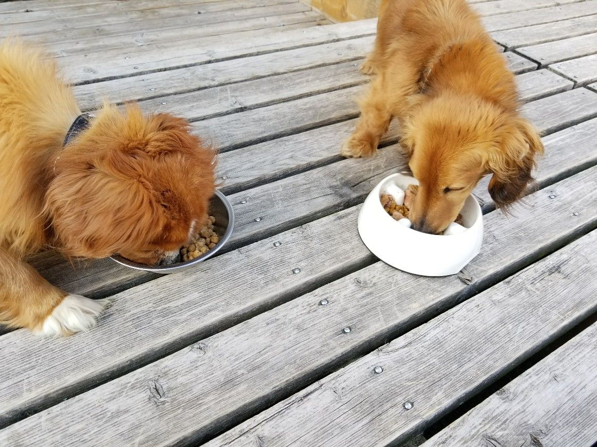 長期預かりゴールデン小太郎君とキャバリア大吉君、しっかり完食しました。