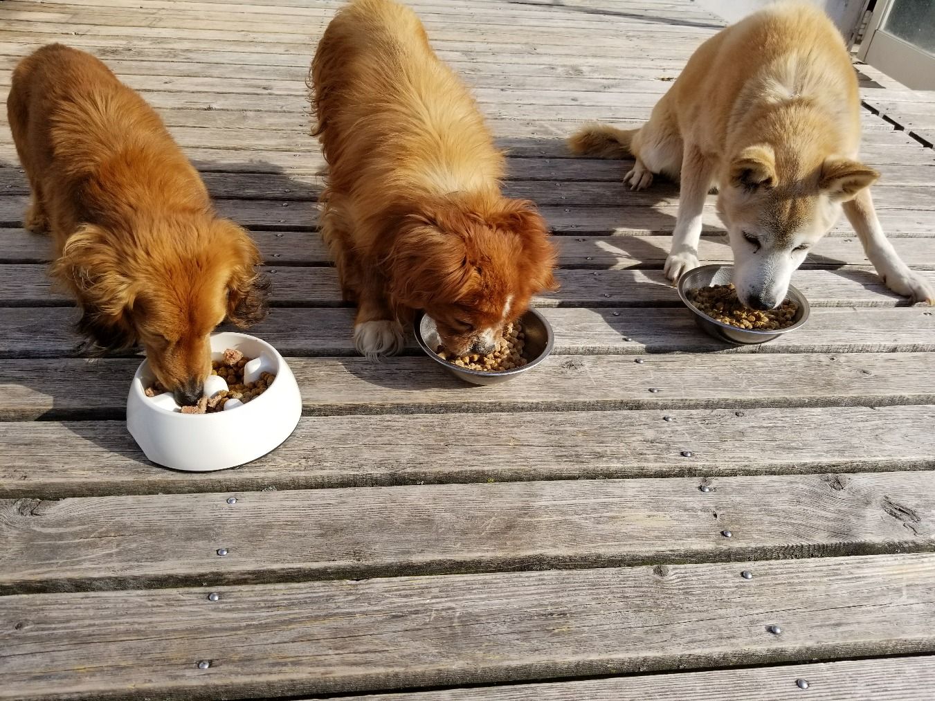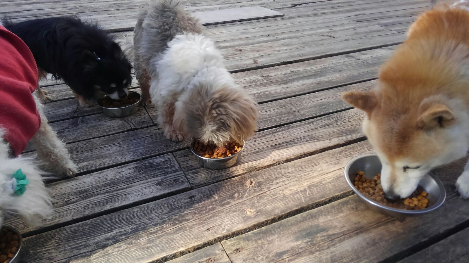 長期預かりゴールデン小太郎君とキャバリア大吉君とチワワロッチちゃん、しっかり完食しました。
