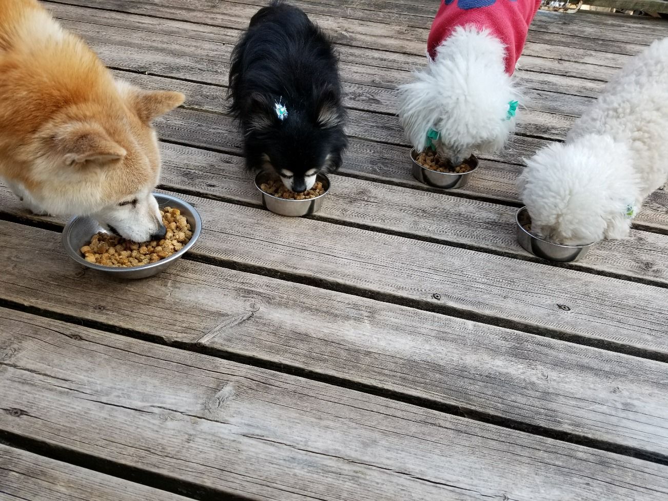 生涯預かりミックスのんちゃんとキュウちゃん、ビーグルアンディ君とダックスティラミス君とロッキー君、しっかり完食しました。