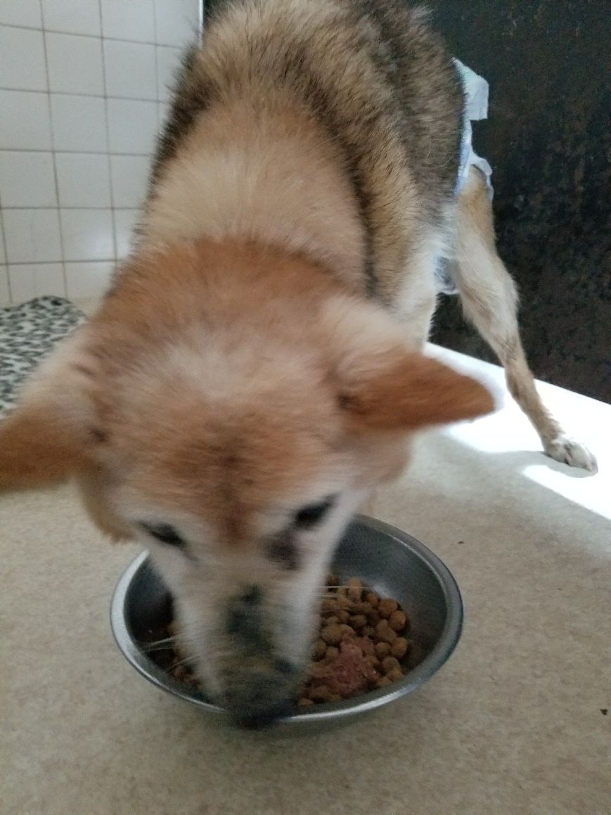 生涯お預かりミックスちびちゃん、キュウちゃんしっかり完食しました。
