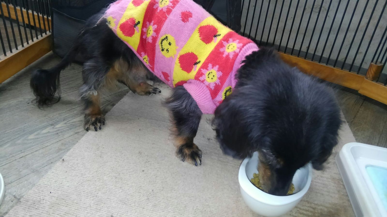 生涯お預かりミックスのんちゃん、ダックスロッキーくんしっかり完食しました。