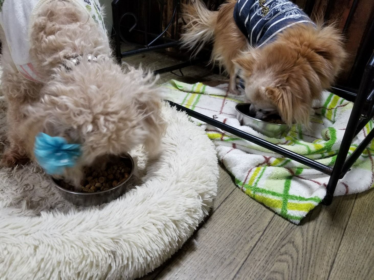 生涯お預かりトイプーベラちゃん、シーズーココくんしっかり完食しました。