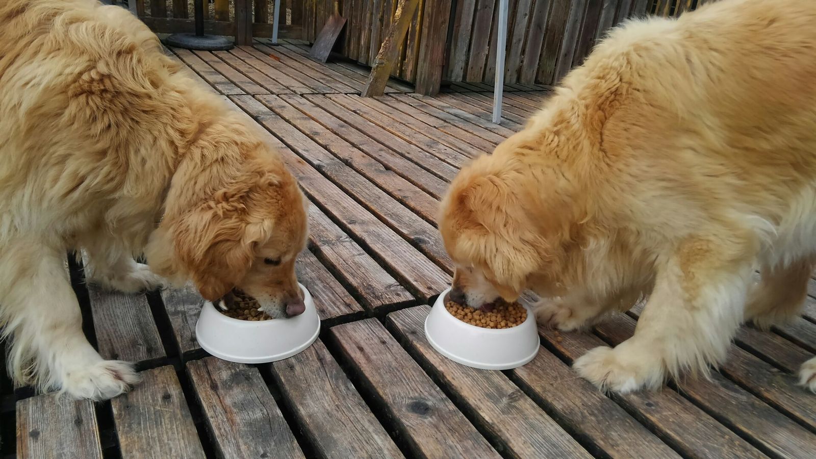 長期預かりゴールデン小太郎君とキャバリア大吉君、しっかり完食しました。