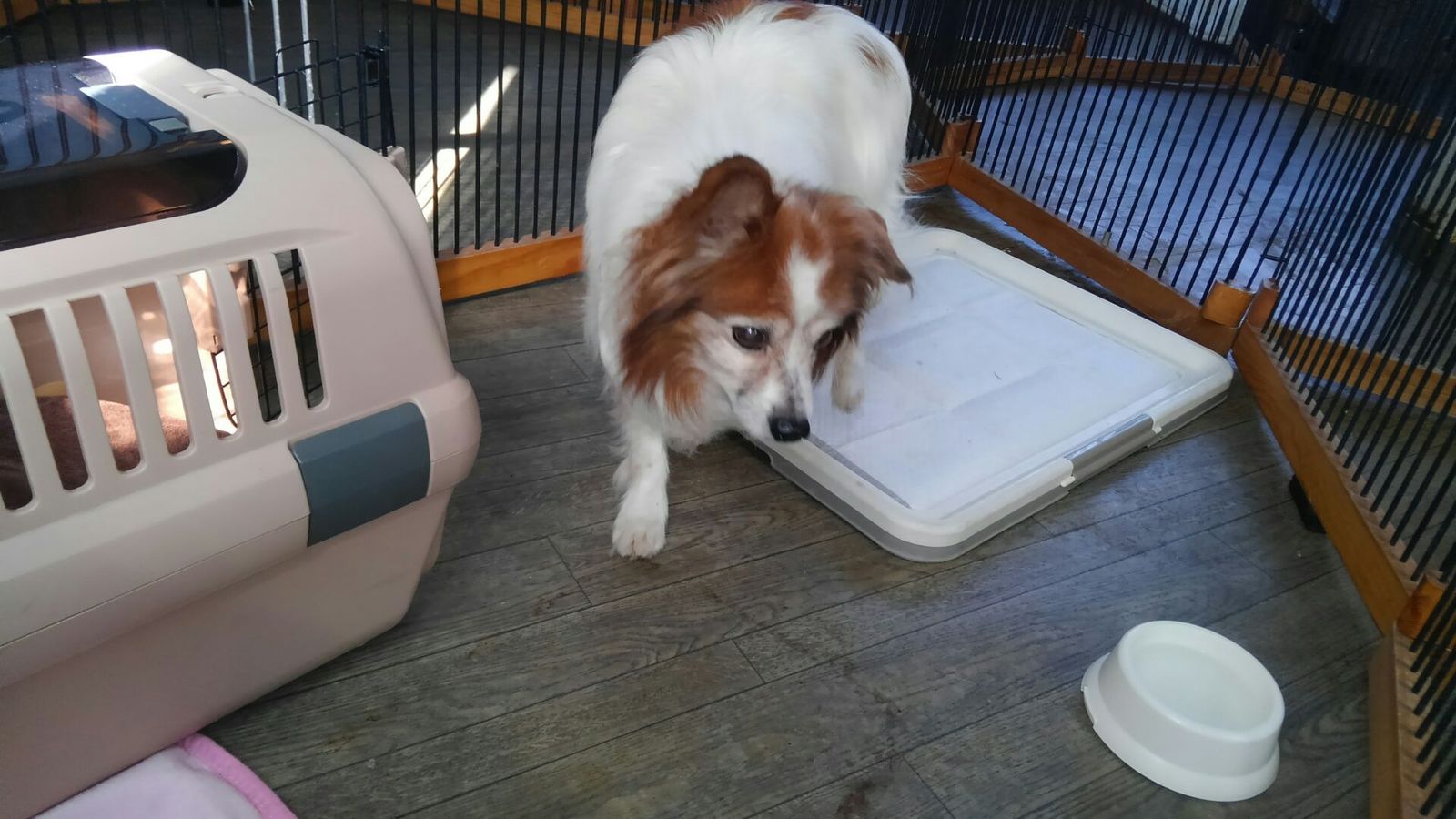 パピヨンのシェリー君がチェックインしました。 シェリー君は15歳ですがまだまだ足腰もしっかりしている様子です。 吠えることもしないで店長に近寄ってくれてます。