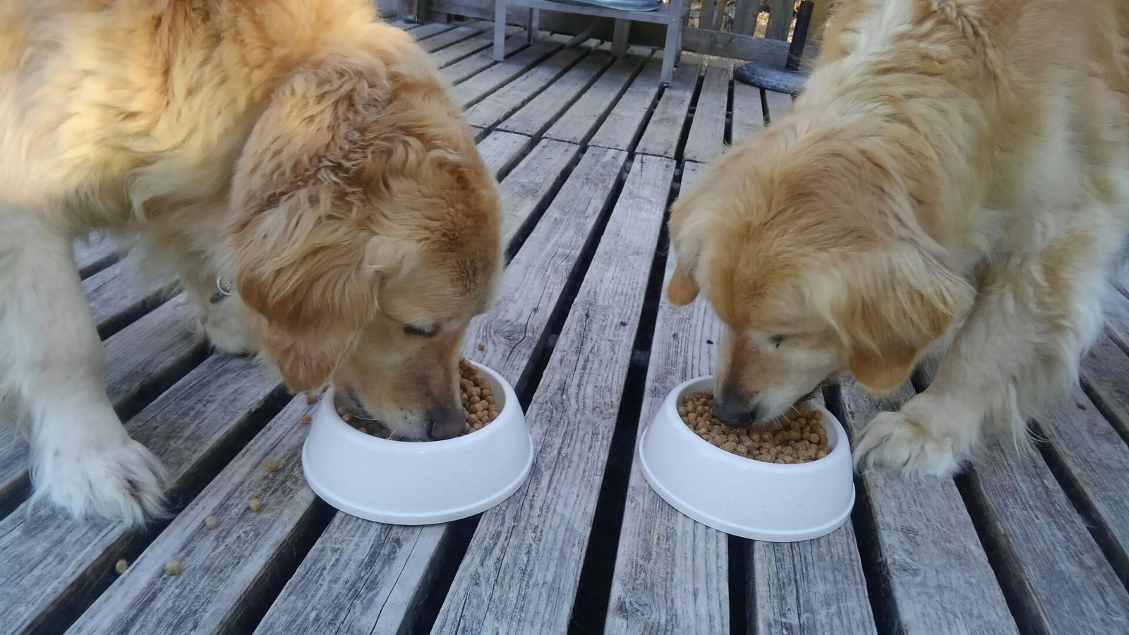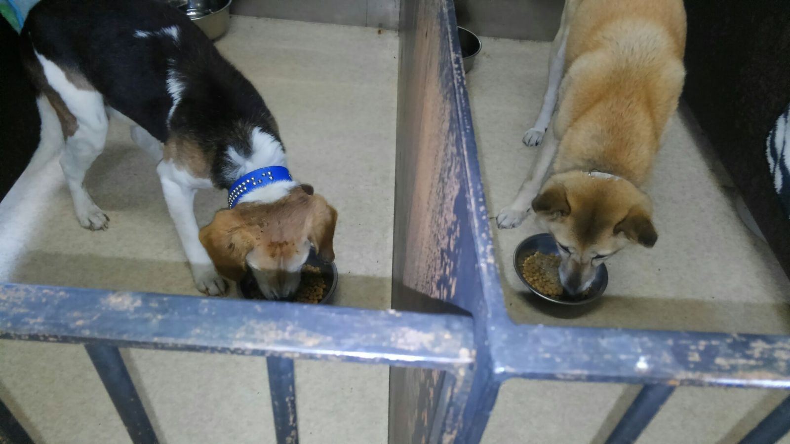 長期預かりゴールデン小太郎君とキャバリア大吉君、しっかり完食しました。