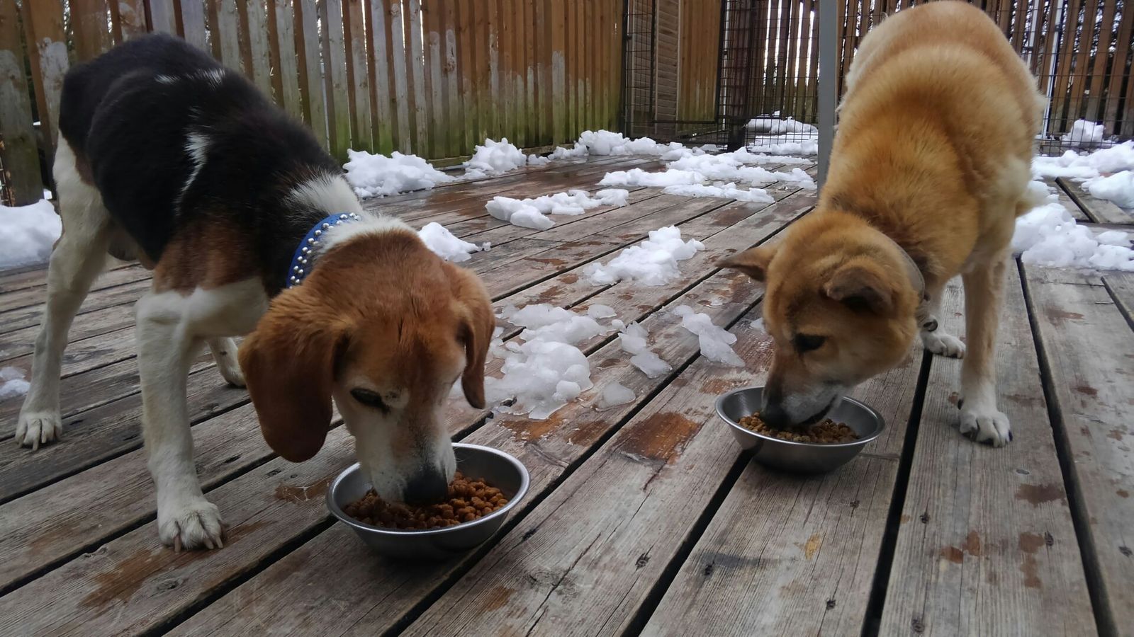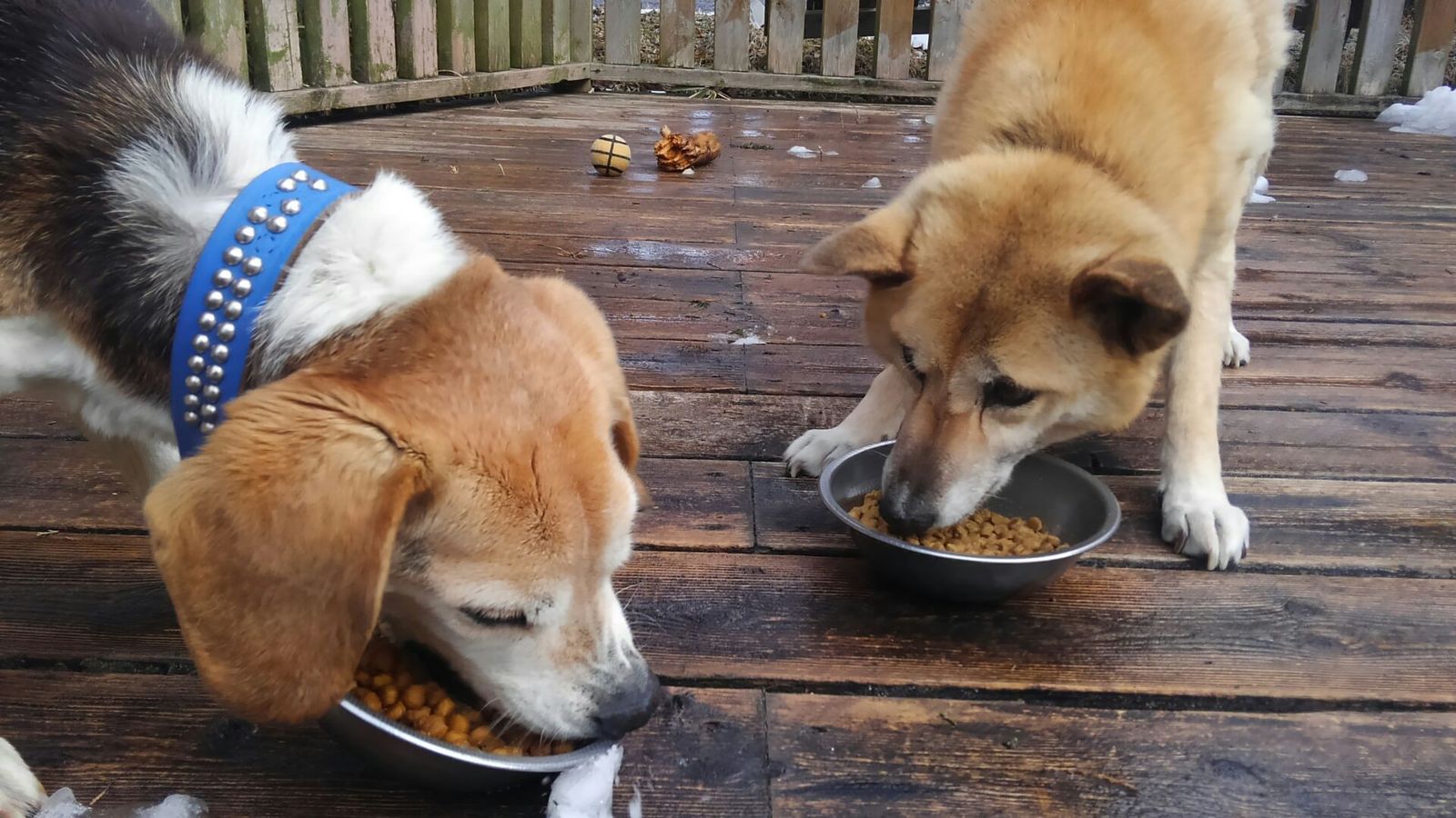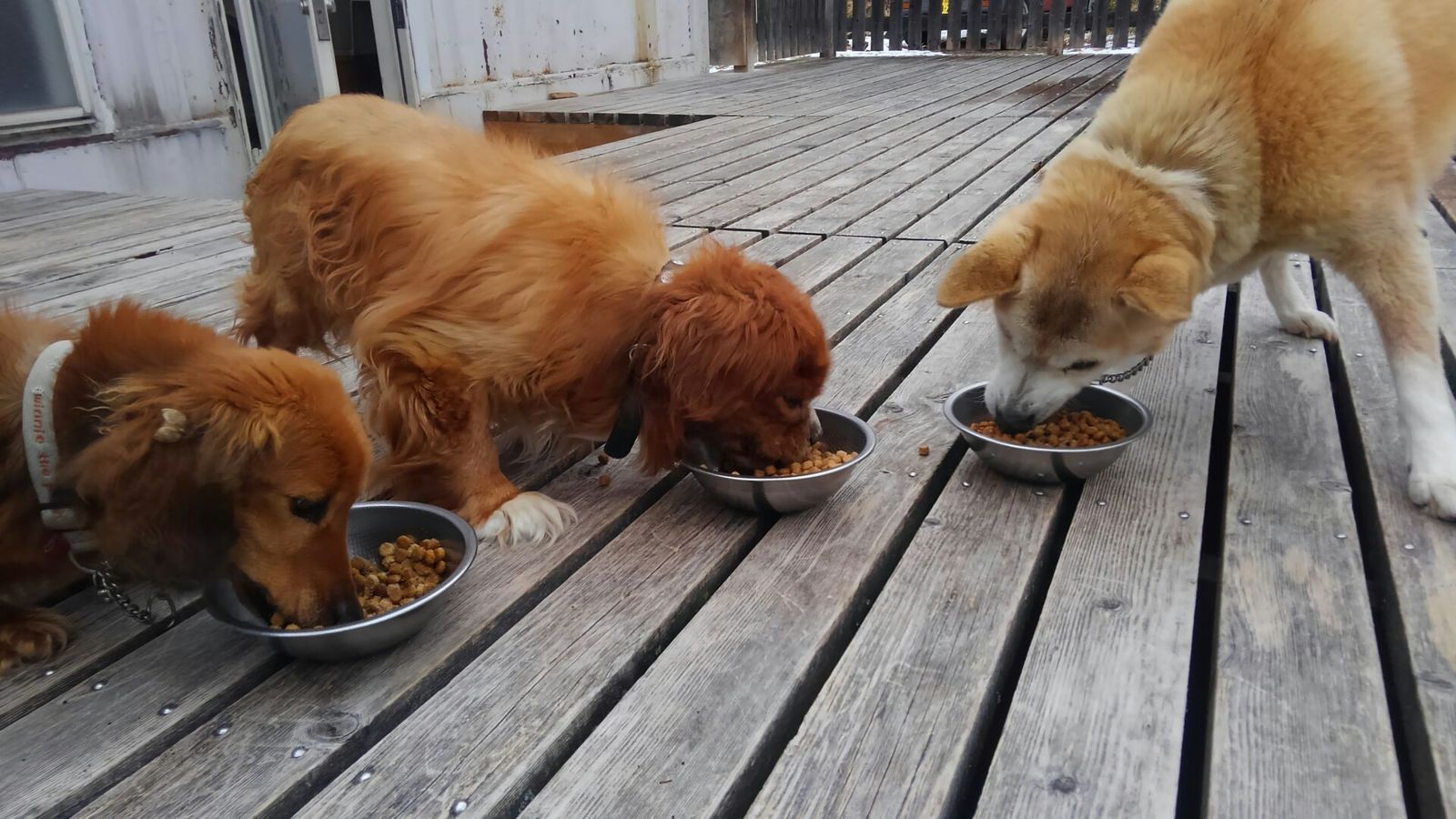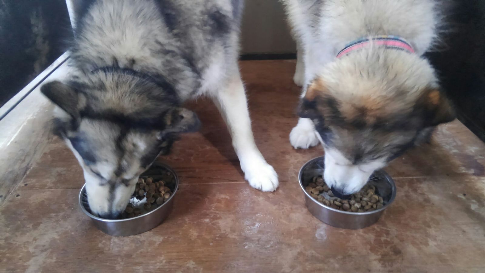アラスカンマラミュートのカイ君とハナちゃん、しっかり完食しました。
