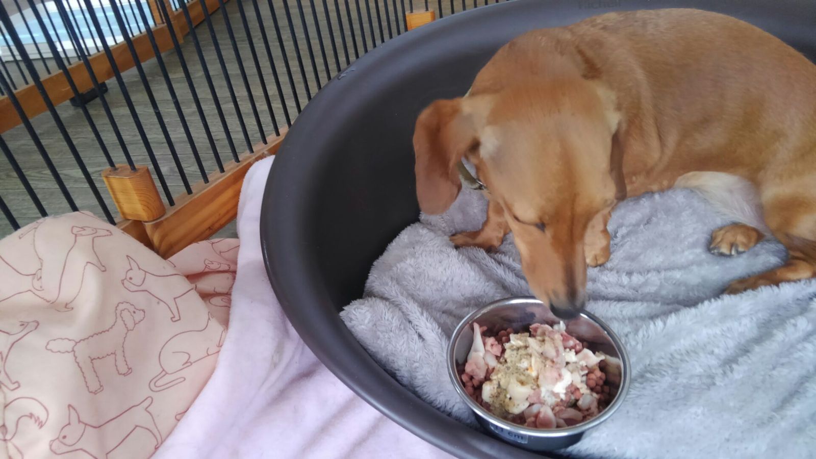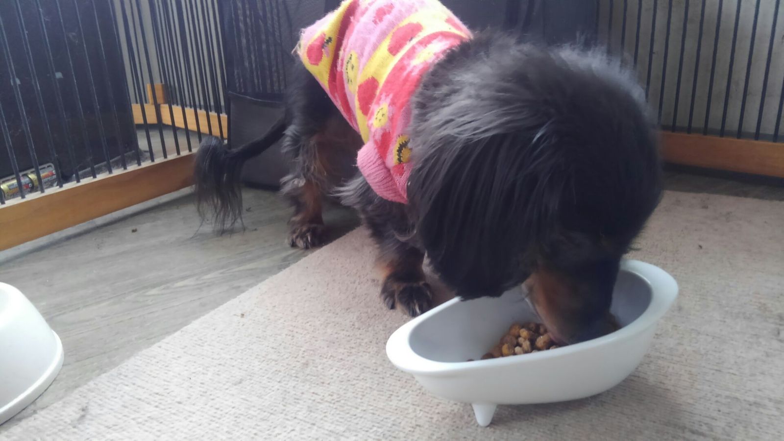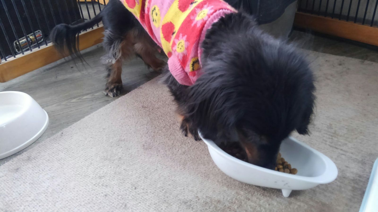 生涯お預かりダックスティラミス君、柴犬凜ちゃんしっかり完食しました。