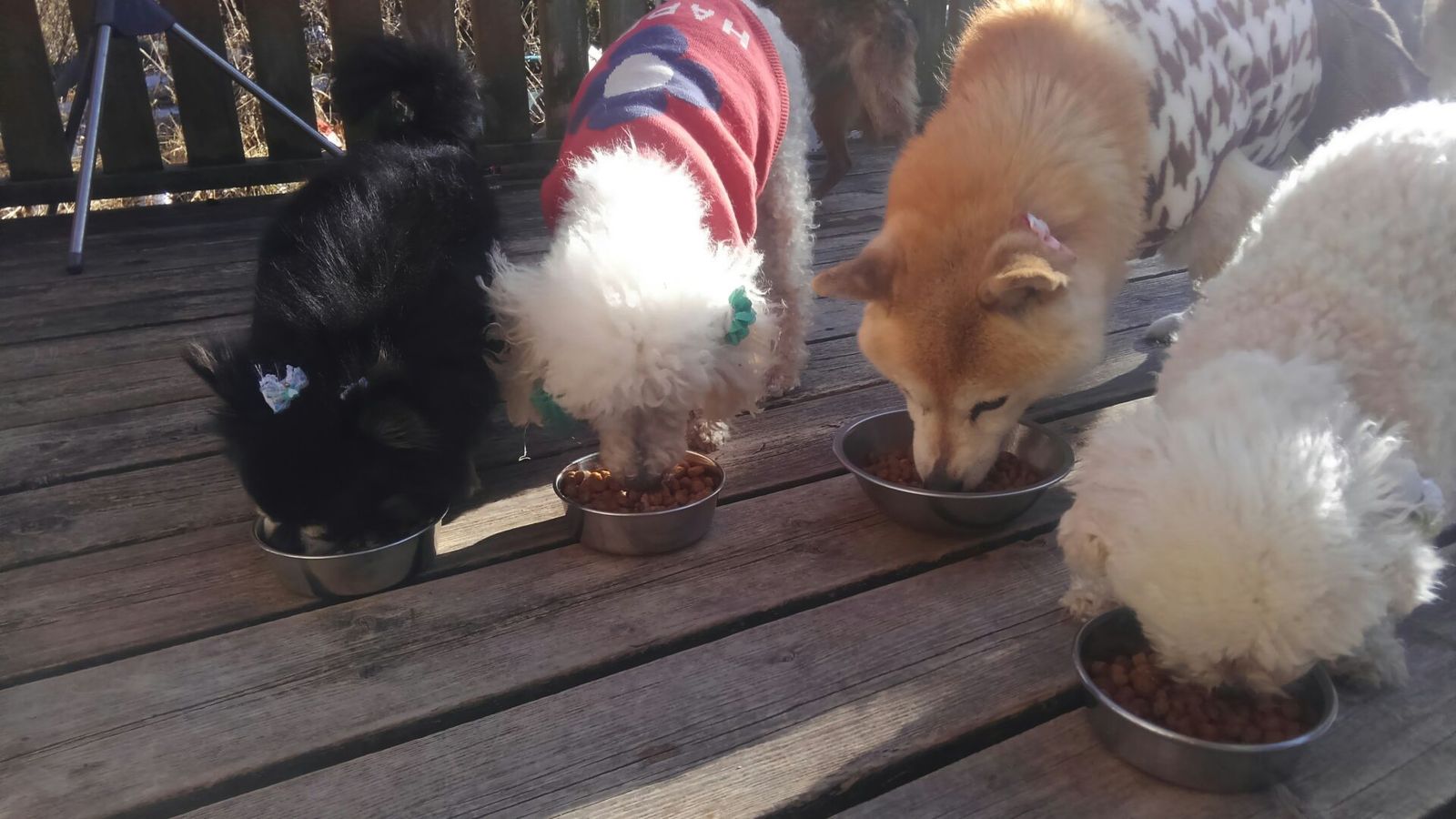 生涯預かり柴凛ちゃんとシーズーココ君、チワワ姫ちゃんとバロン君、生涯預かりトイプーベラちゃん、ビーグルアンディ君しっかり完食しました。