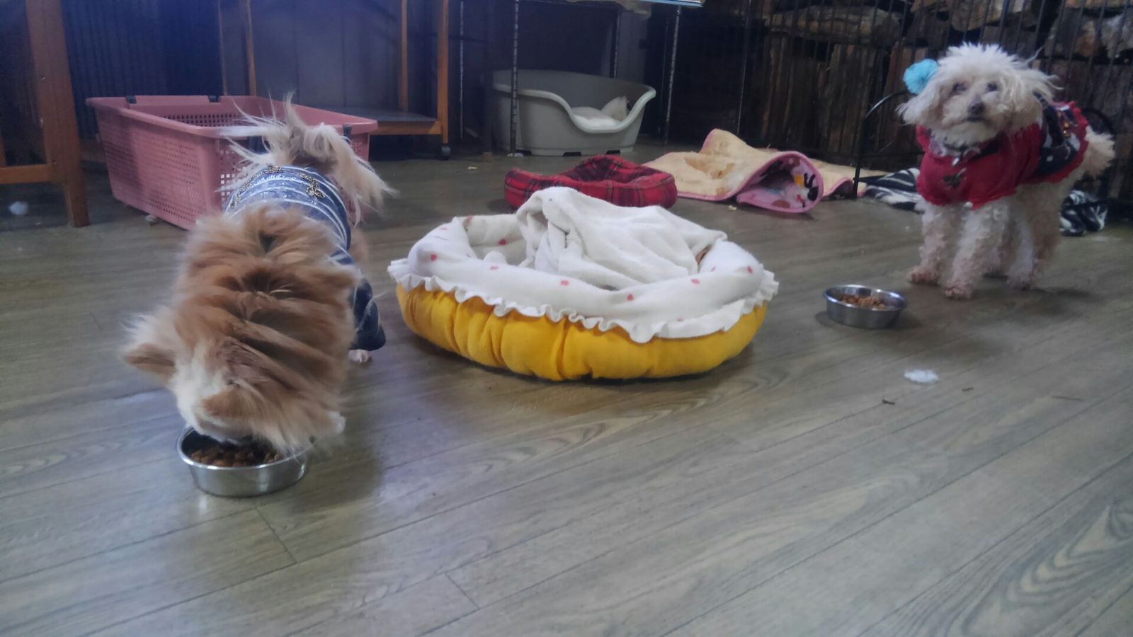 生涯お預かりトイプーベラちゃん、シーズーココくんしっかり完食しました。