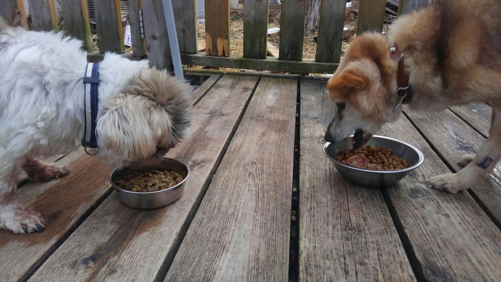 生涯預かりミックスキュウちゃんとシーズーココ君、しっかり完食しました。