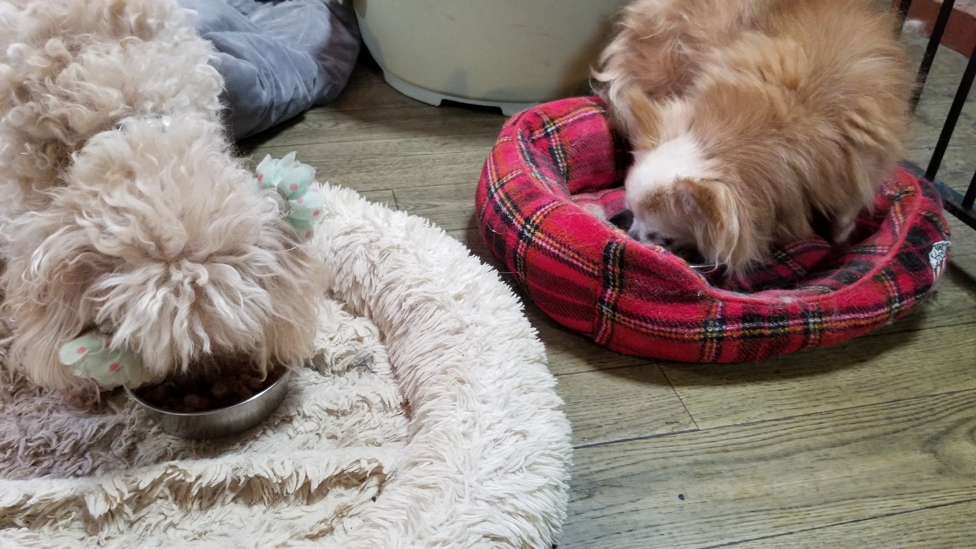 生涯預かりミックスのんちゃんとキュウちゃんとチビちゃん、柴凛ちゃんしっかり完食しました。
