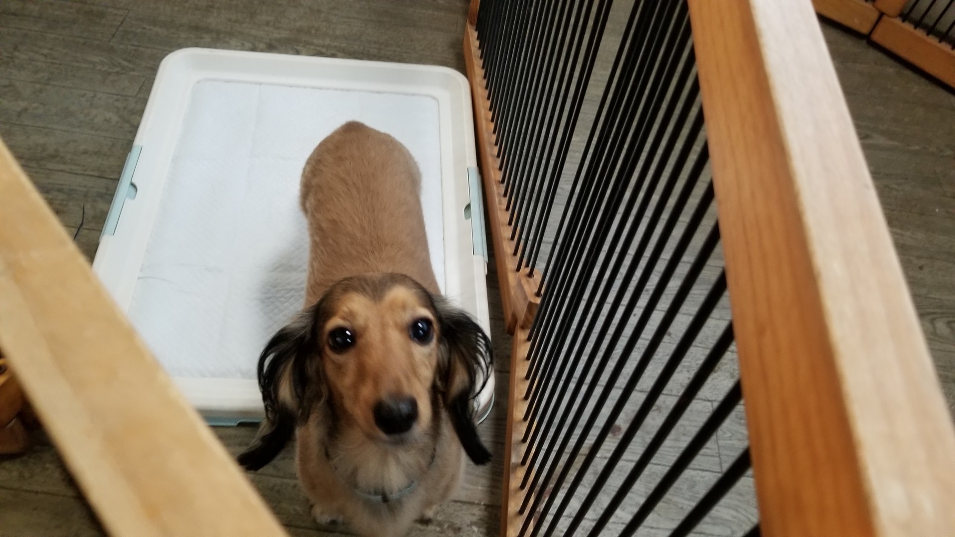 サークルでピョンピョンして出たがっていたので扉を開けると出てきました。