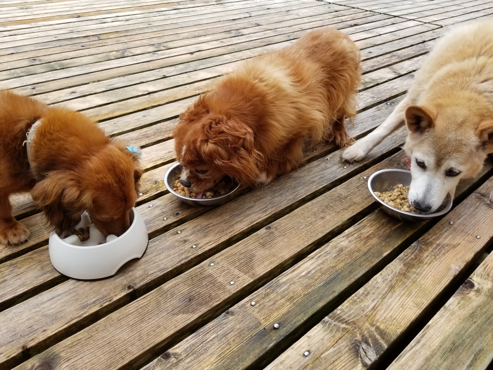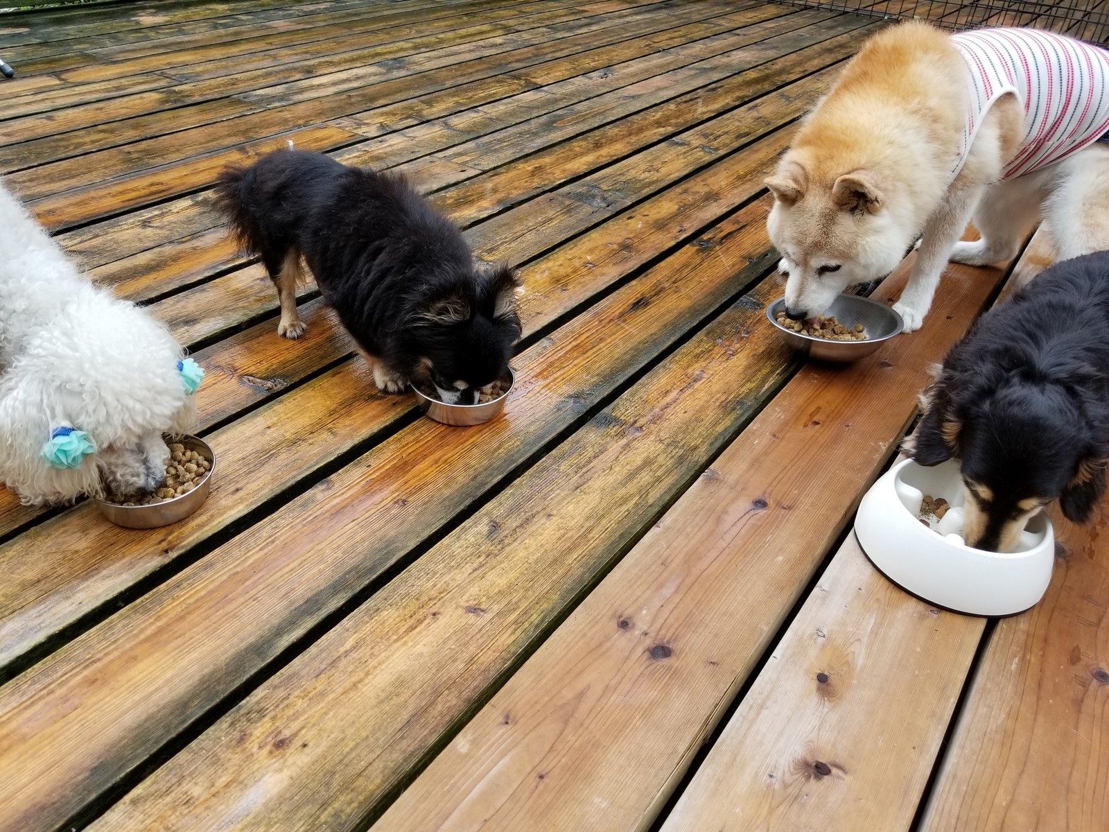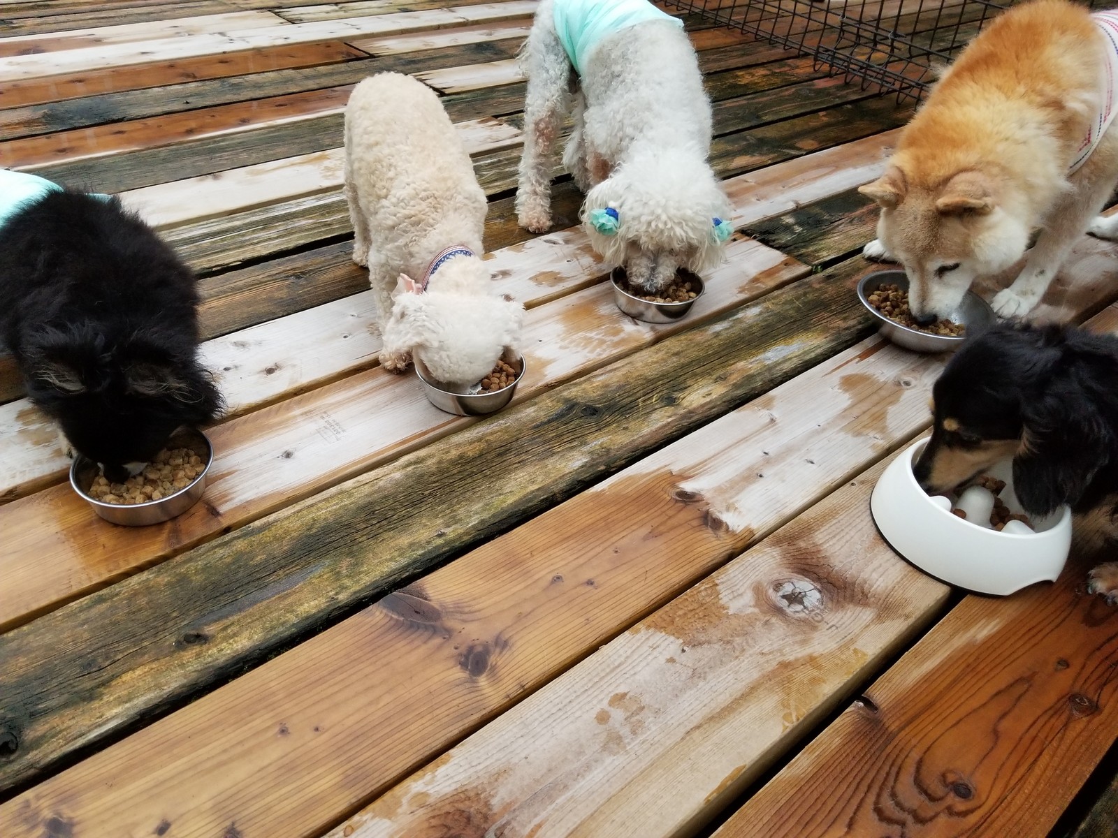 さ長期預かりゴールデン小太郎君とキャバリア大吉君、トイプーゆずちゃんとミチゾー君、しっかり完食しました。