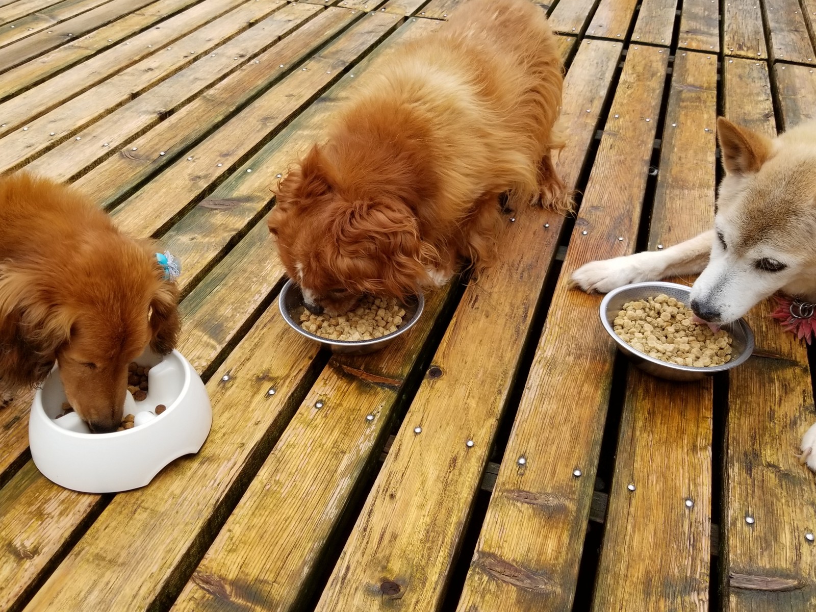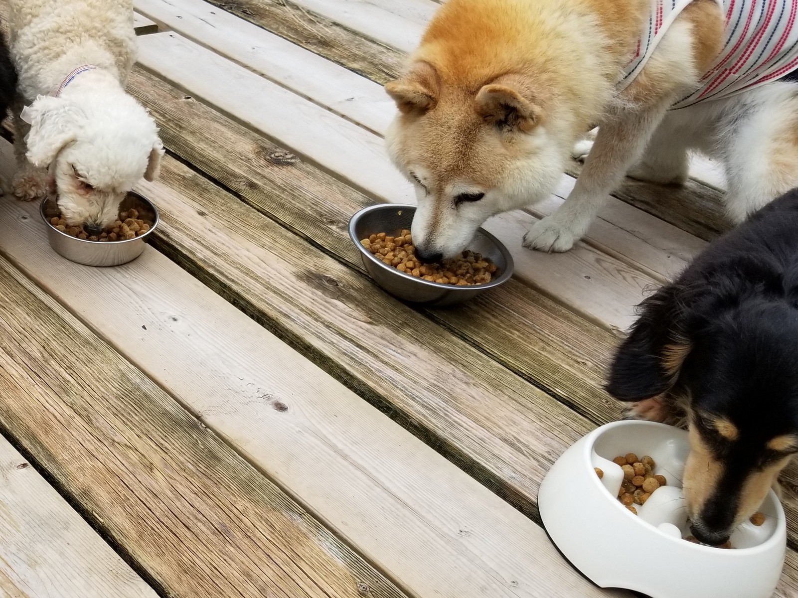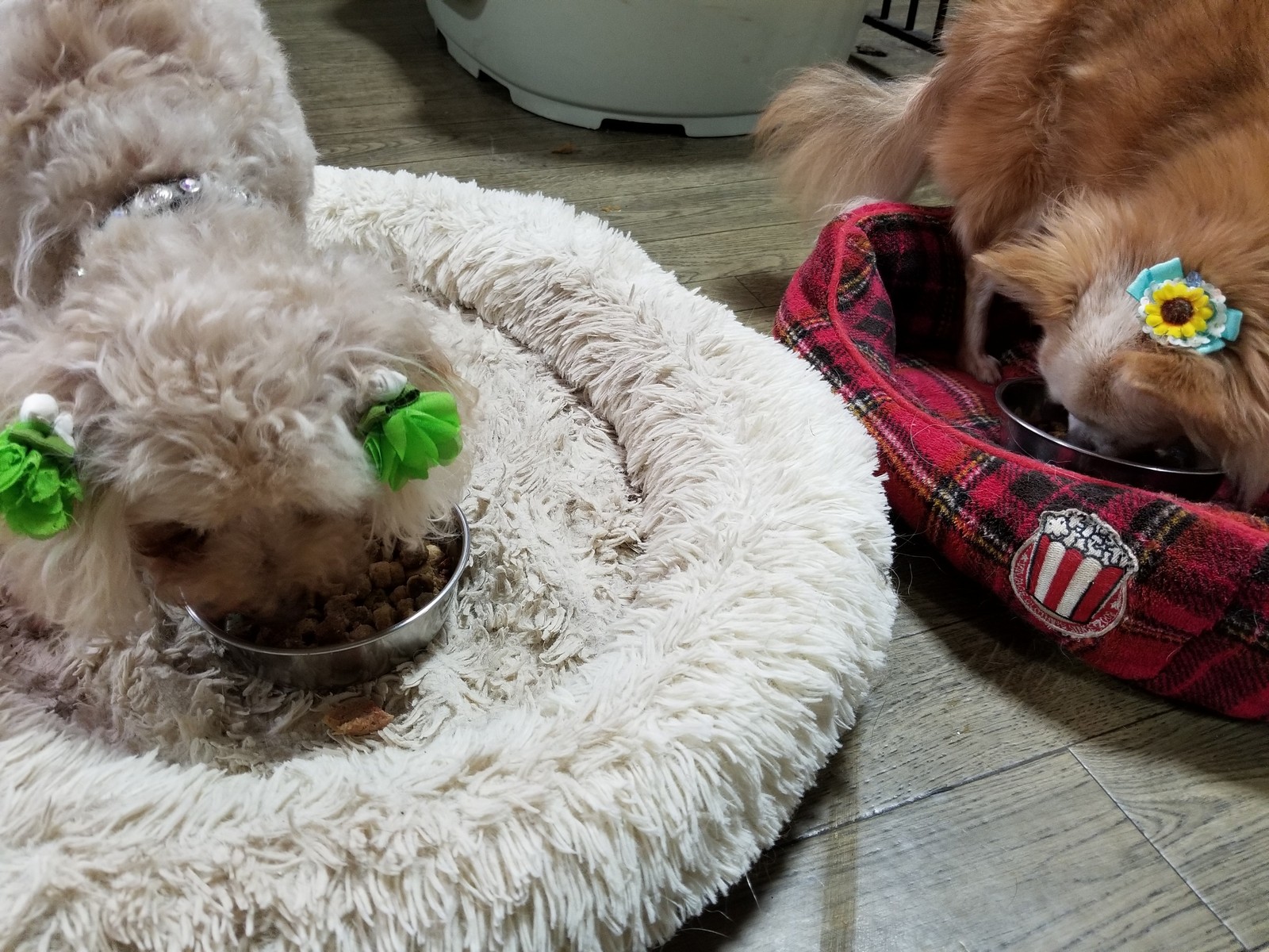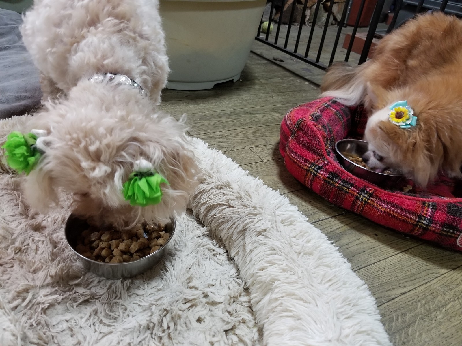 さ長期預かりゴールデン小太郎君とキャバリア大吉君、トイプーゆずちゃんとミチゾー君、しっかり完食しました。
