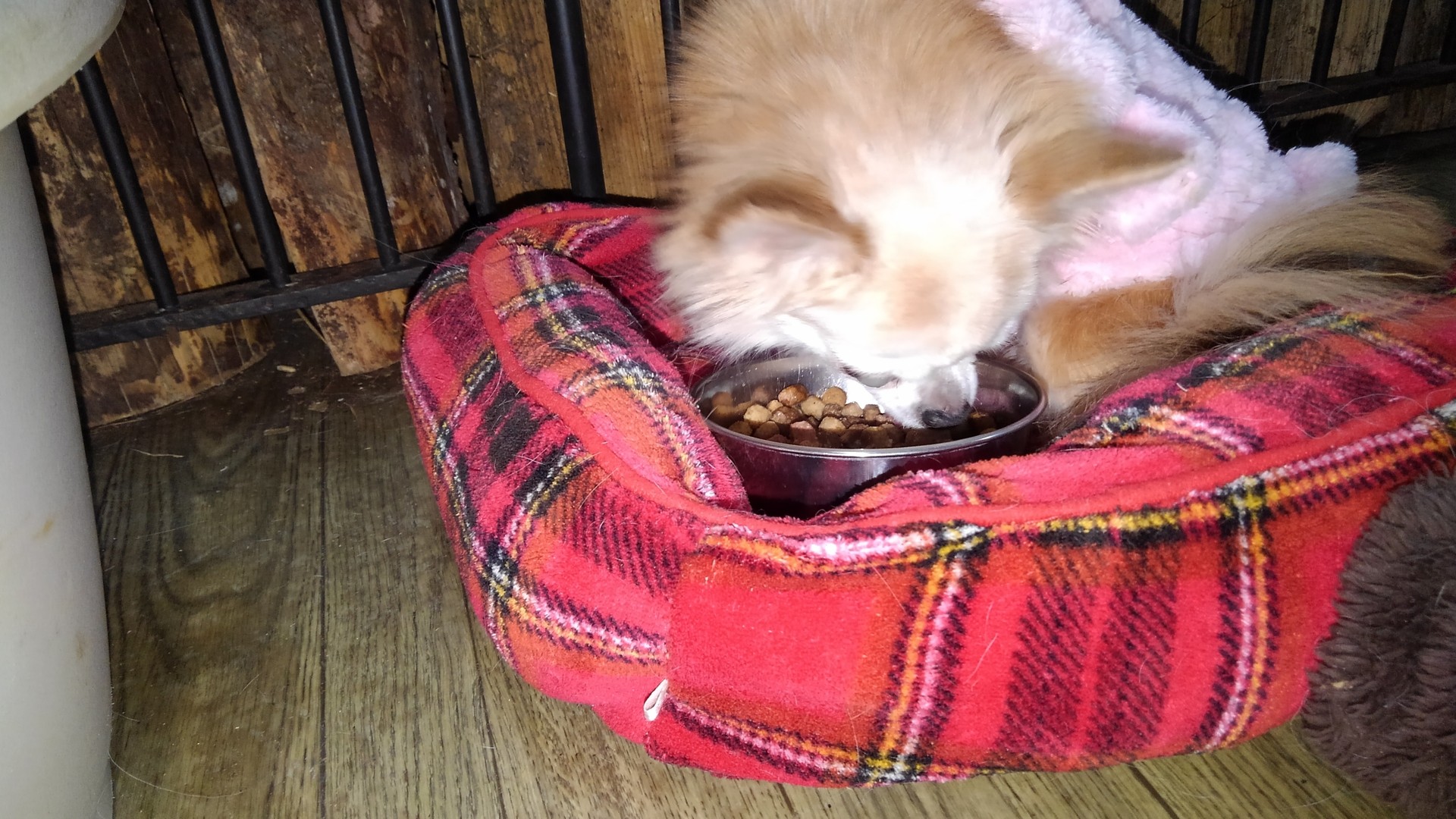 生涯お預かりミックスちびちゃん、キュウちゃんしっかり完食しました。