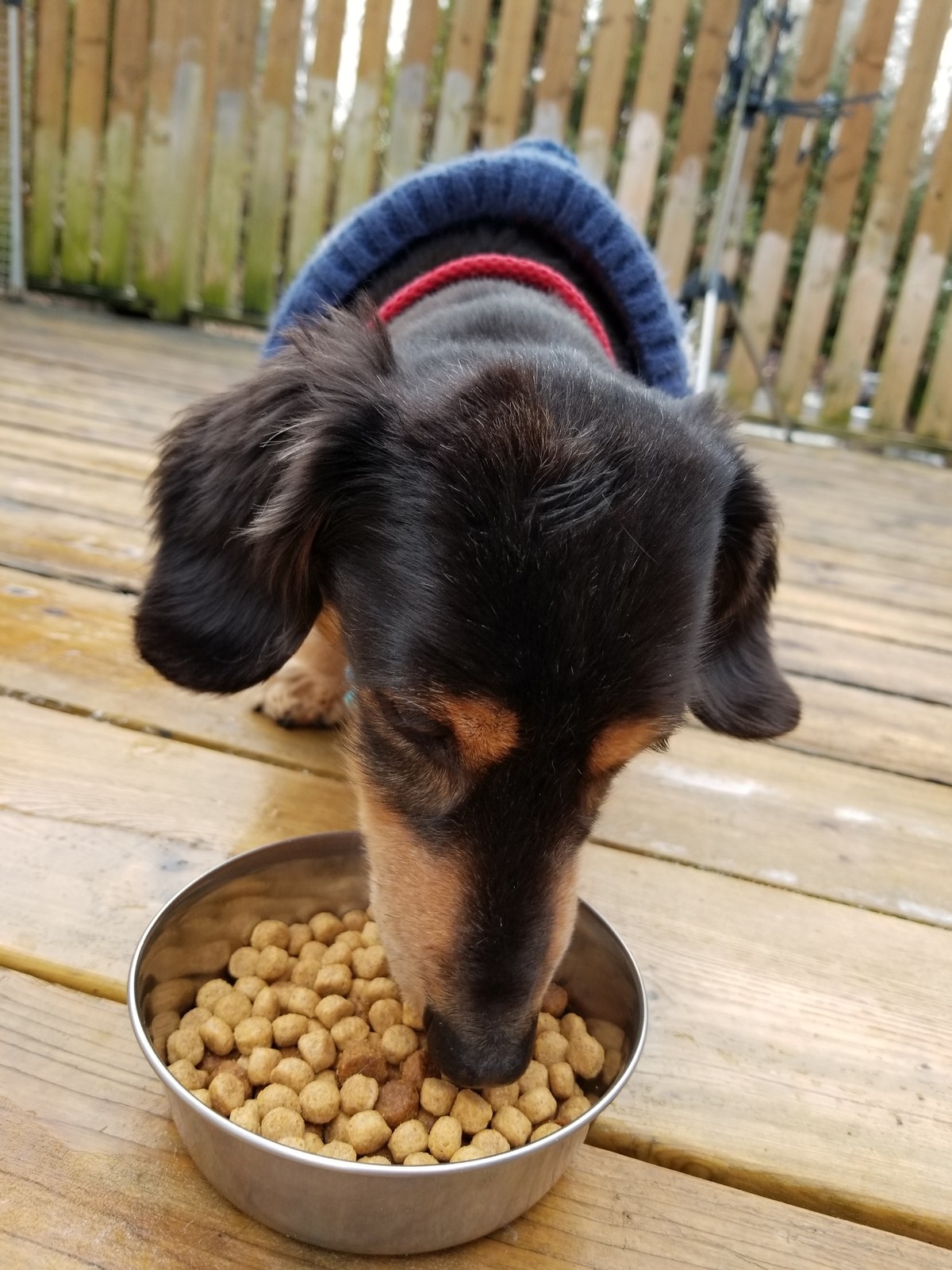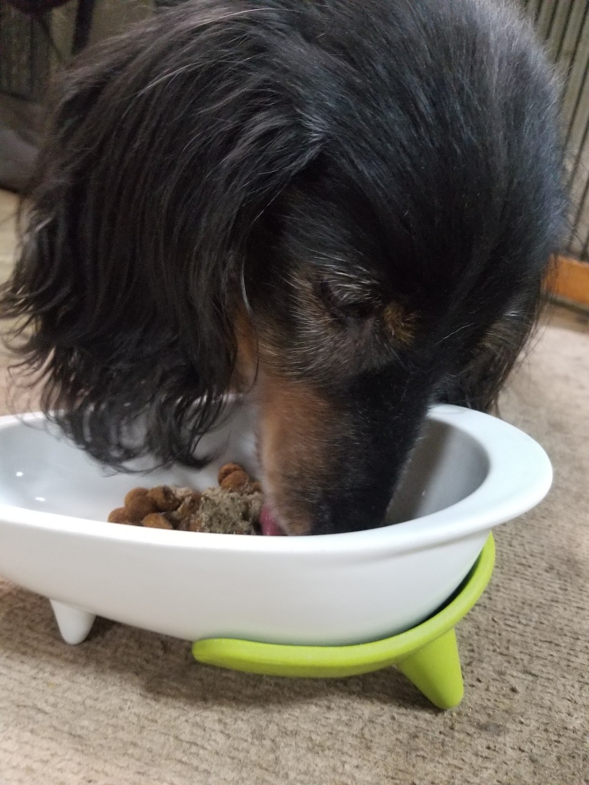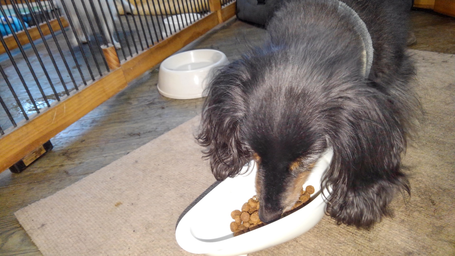 生涯お預かりミックスのんちゃん、ダックスロッキーくんしっかり完食しました。
