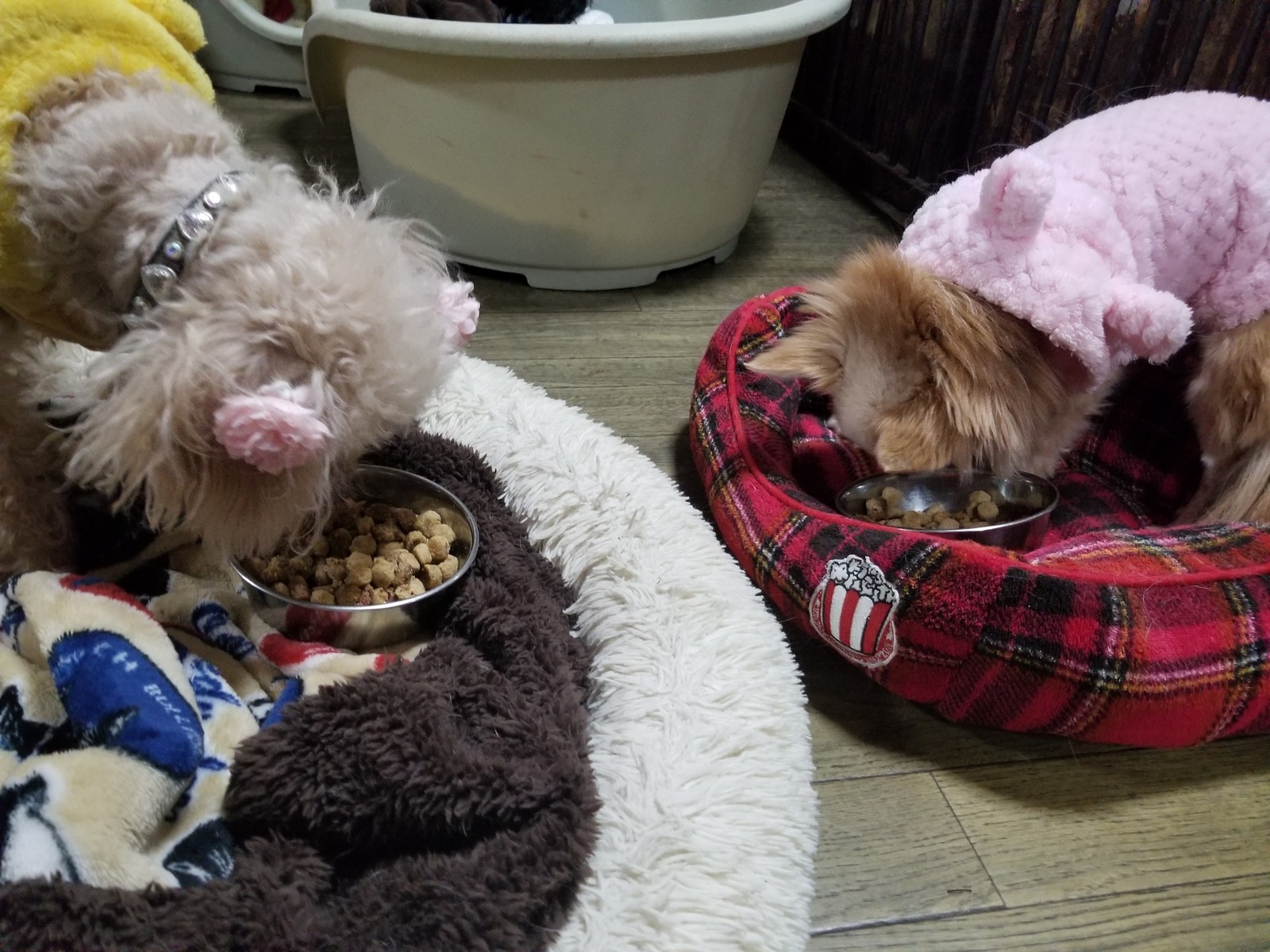 生涯お預かりパピヨンパピーくん、トイプーベラちゃんしっかり完食しました。