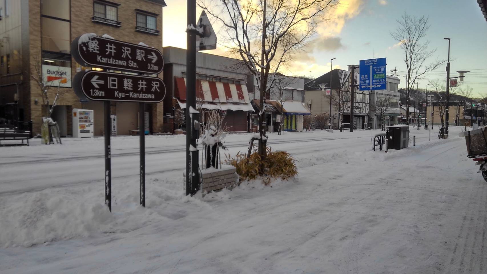 今朝の軽井沢の気温はマイナス8℃、天気晴れてます。夜半の雪は1センチ程積もってます。