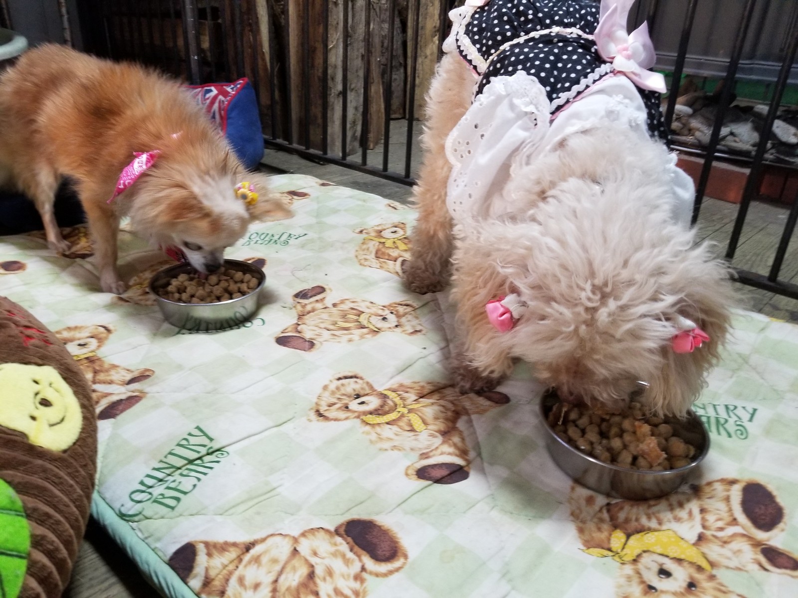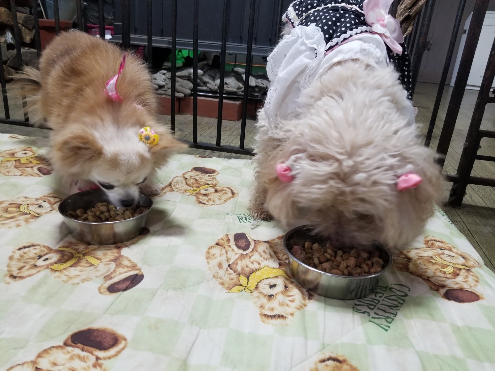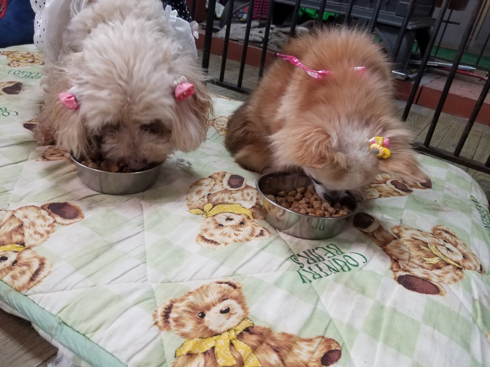 生涯預かりミックスのんちゃんとチビちゃん、トイプーベラちゃんとパピヨンパピー君、しっかり完食しました。