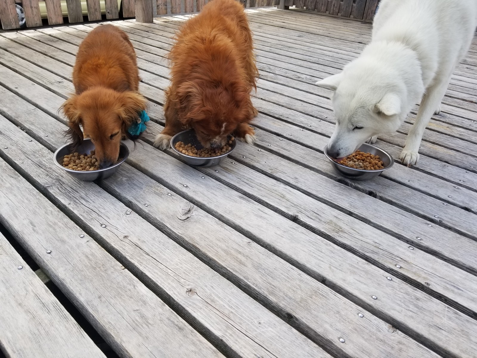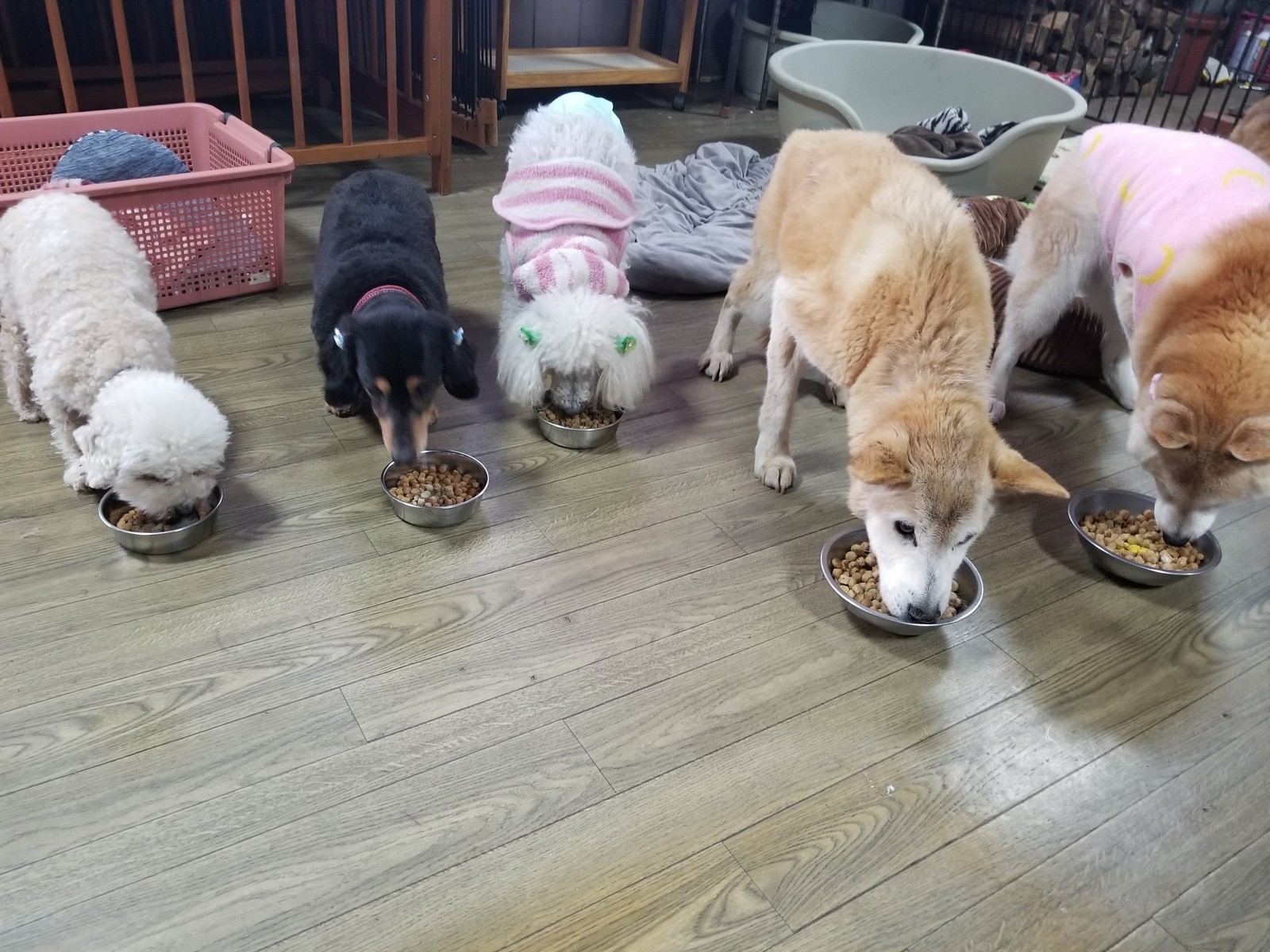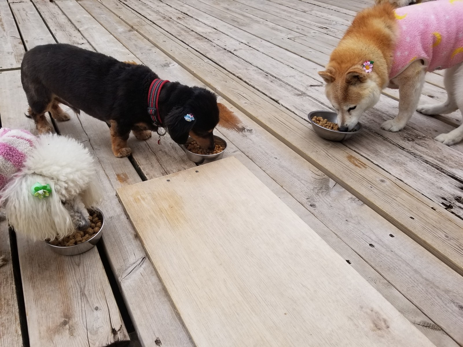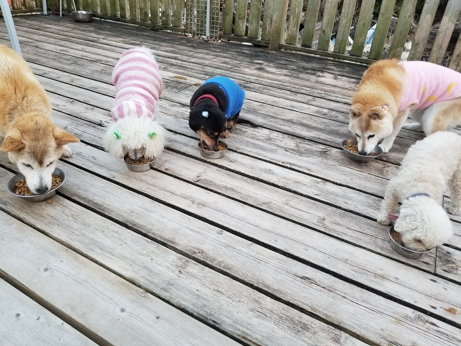 生涯預かりミックスのんちゃんとチビちゃん、柴凛ちゃんと北海道犬リボンちゃんしっかり完食しました。