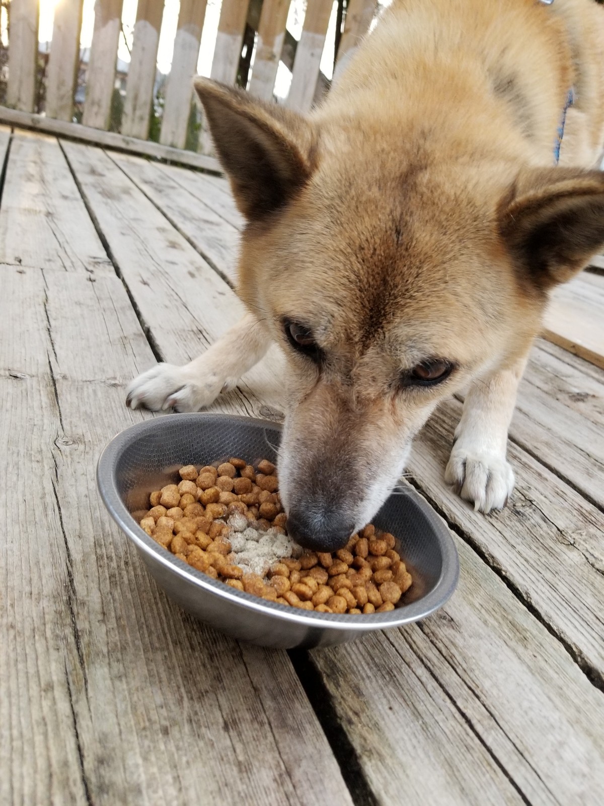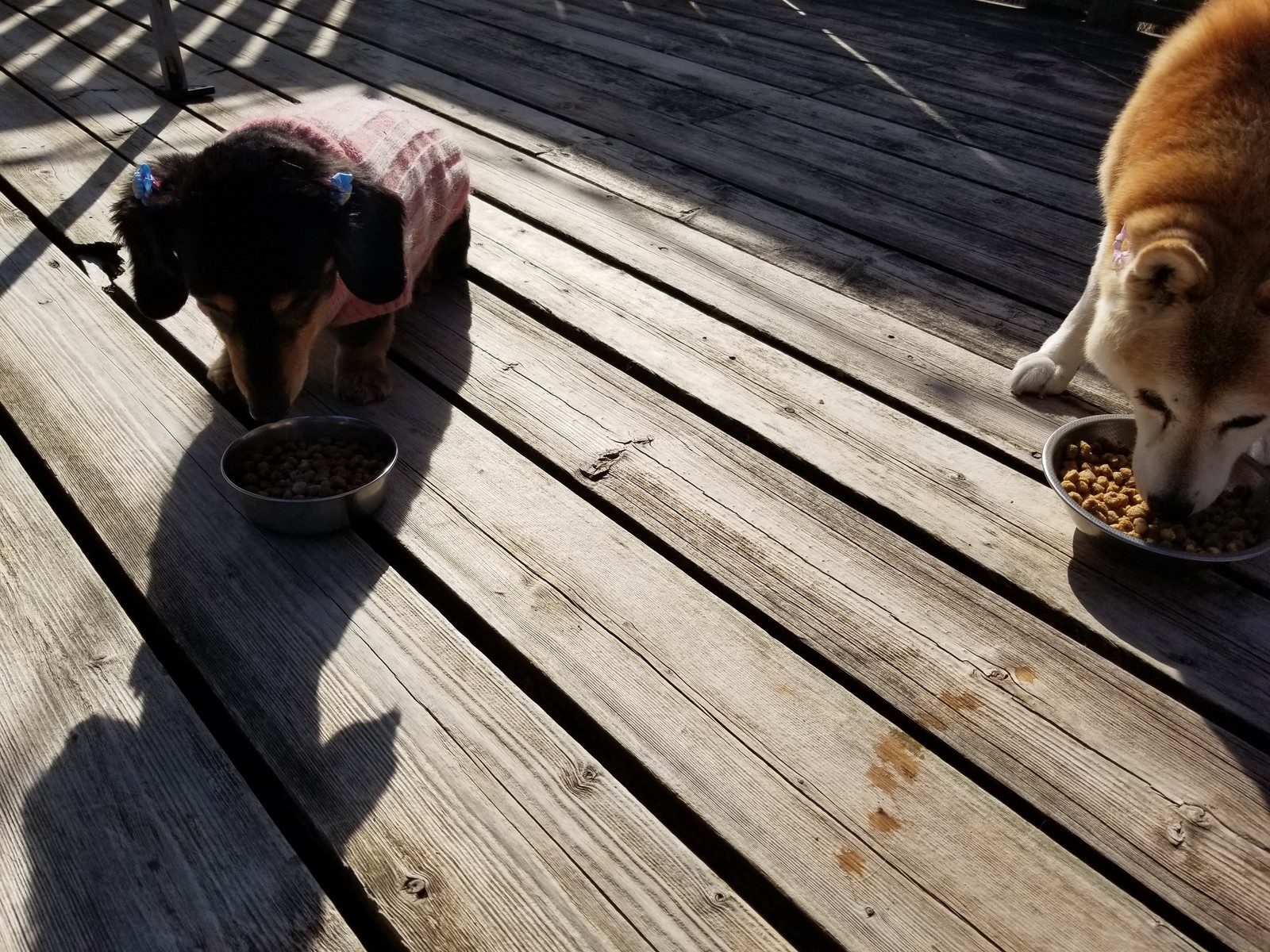 生涯お預かり柴犬凜ちゃん、北海道犬リボンちゃんしっかり完食しました。