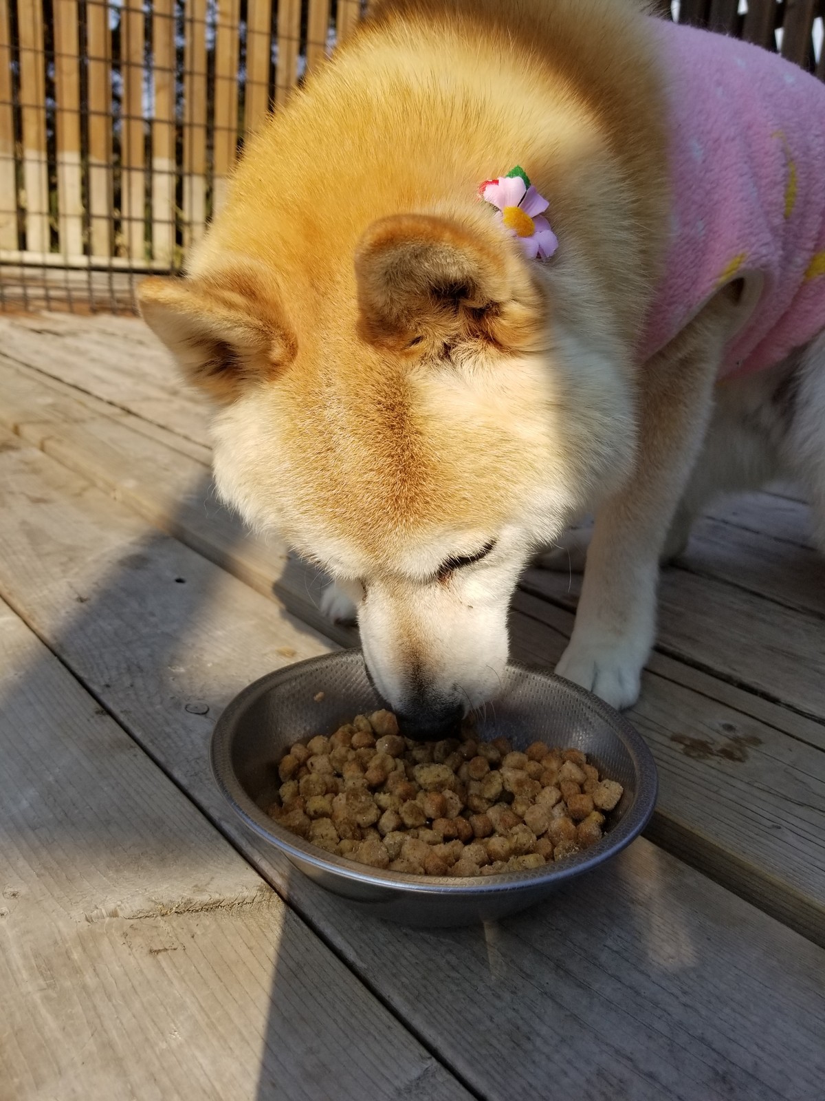 生涯お預かり柴犬凜ちゃん、北海道犬リボンちゃんしっかり完食しました。