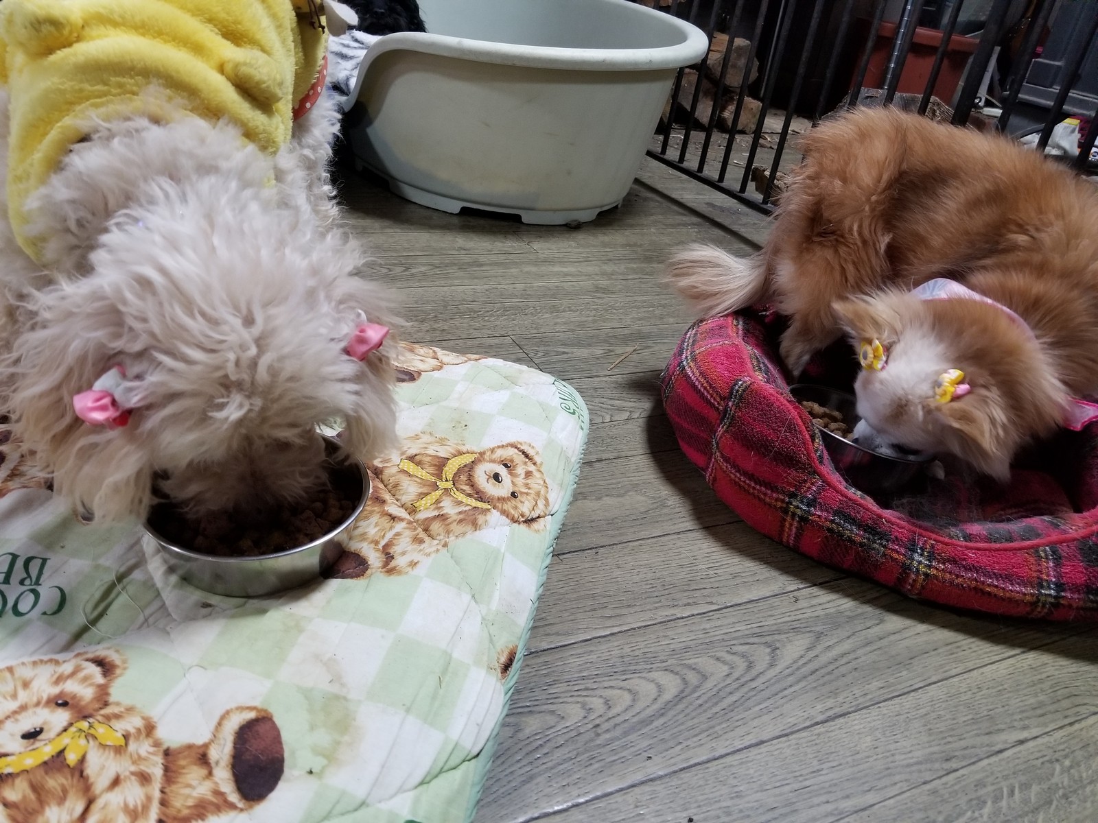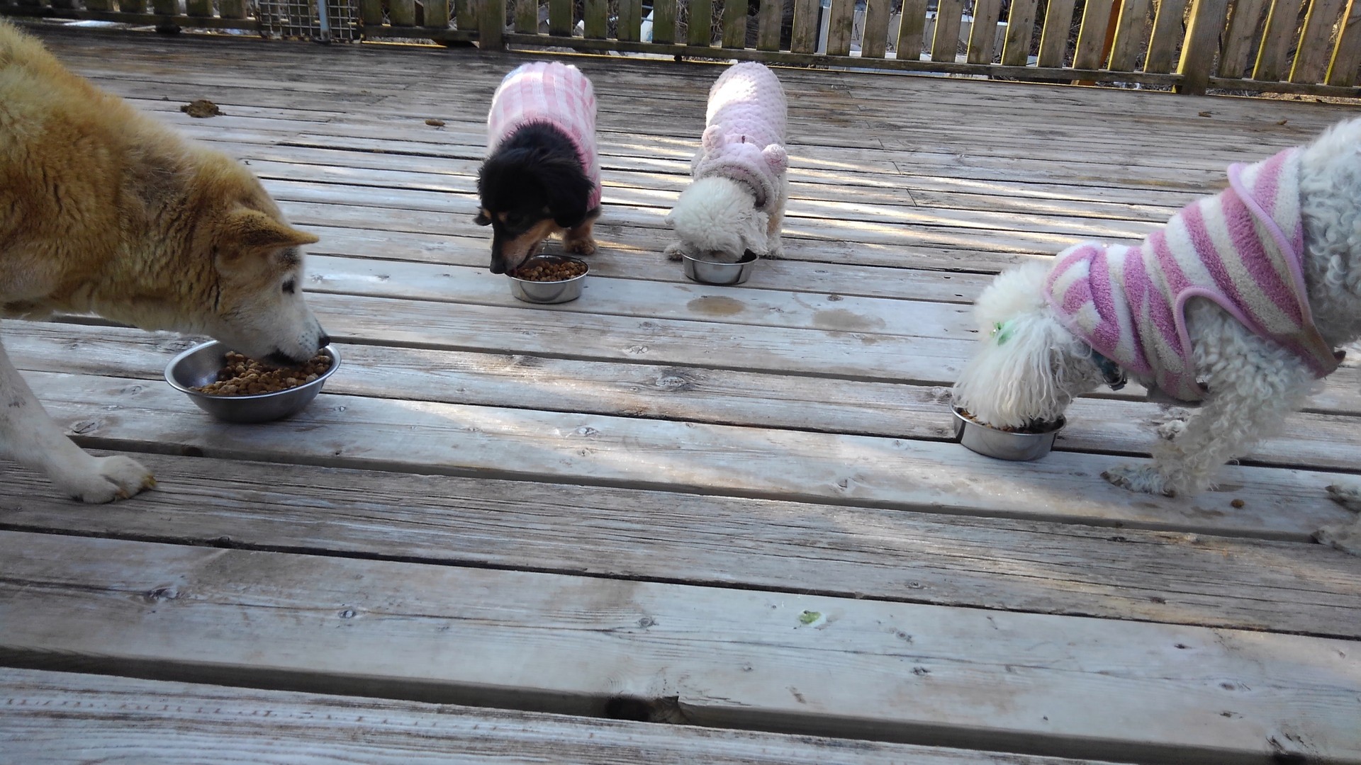 生涯預かり柴凛ちゃんと北海道犬リボンちゃん、チワワ姫ちゃんとバロン君、しっかり完食しました。