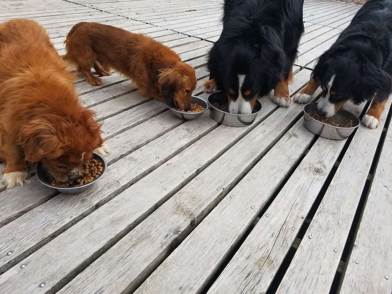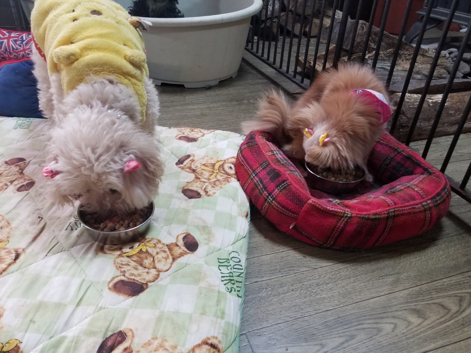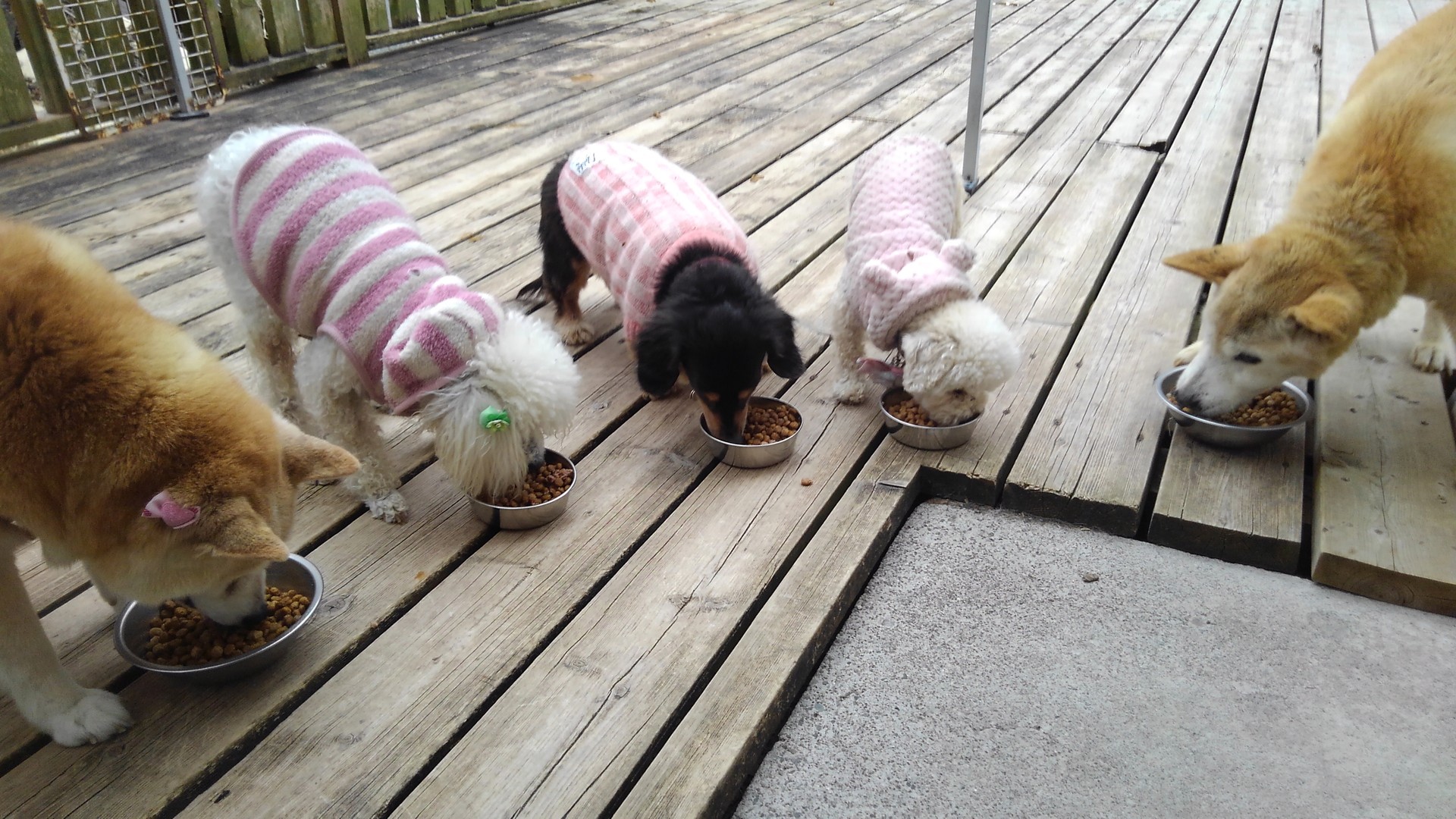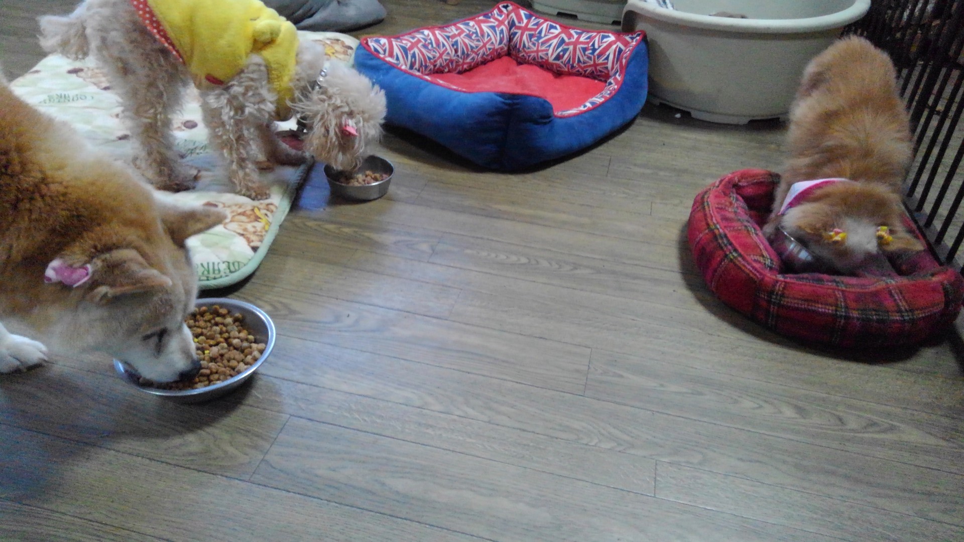 生涯預かり柴凛ちゃんと北海道犬リボンちゃん、トイプーベラちゃんとパピヨンパピー君しっかり完食しました。