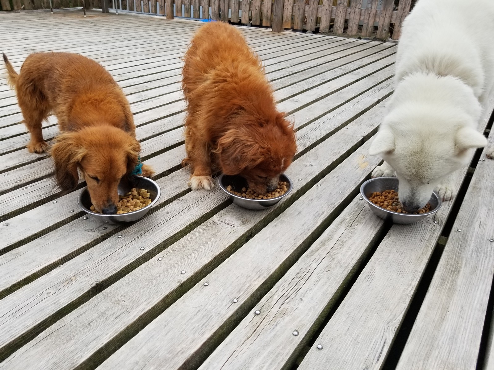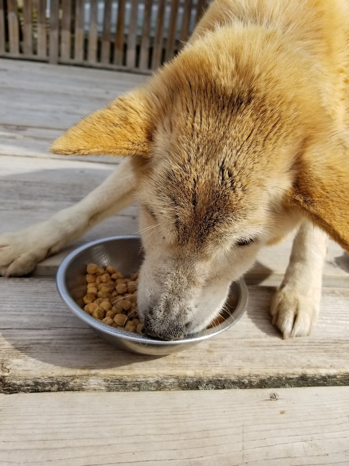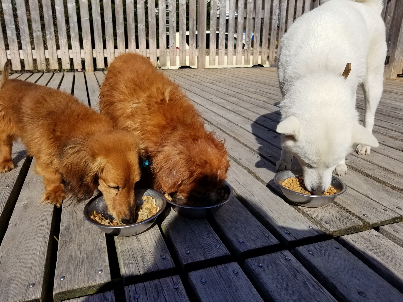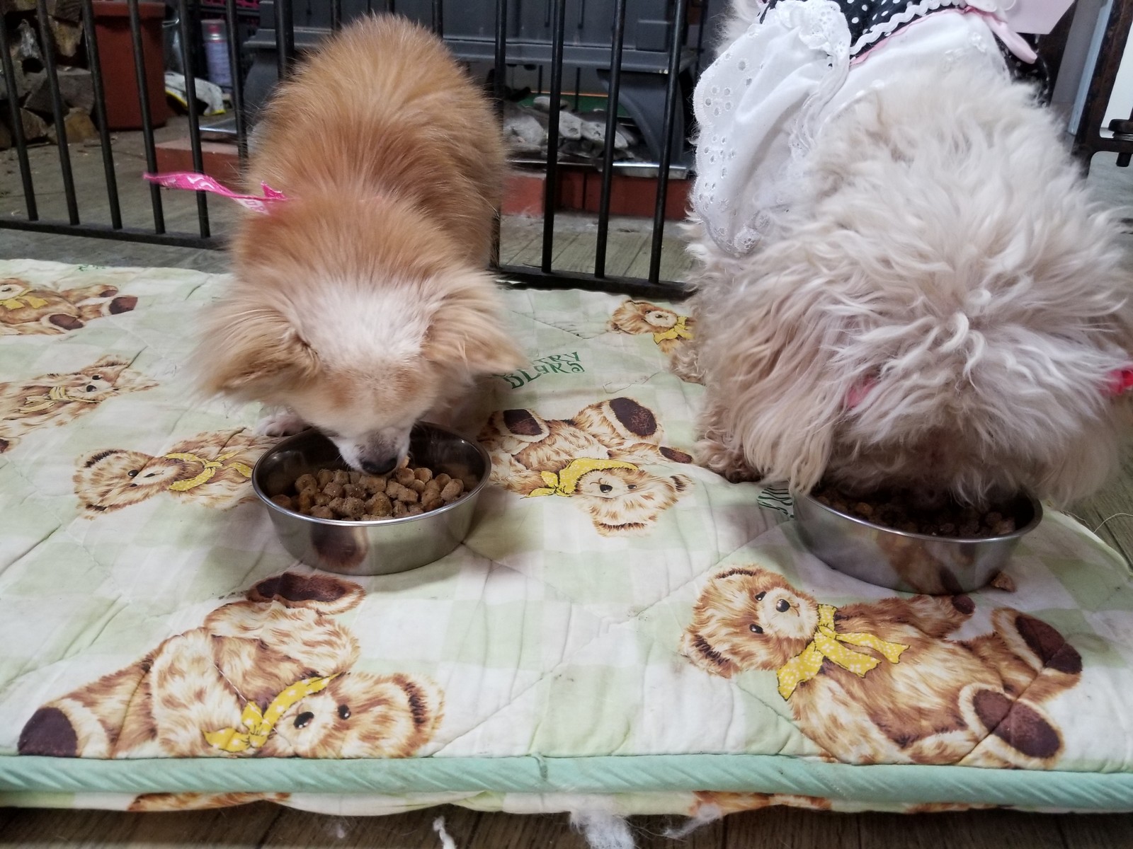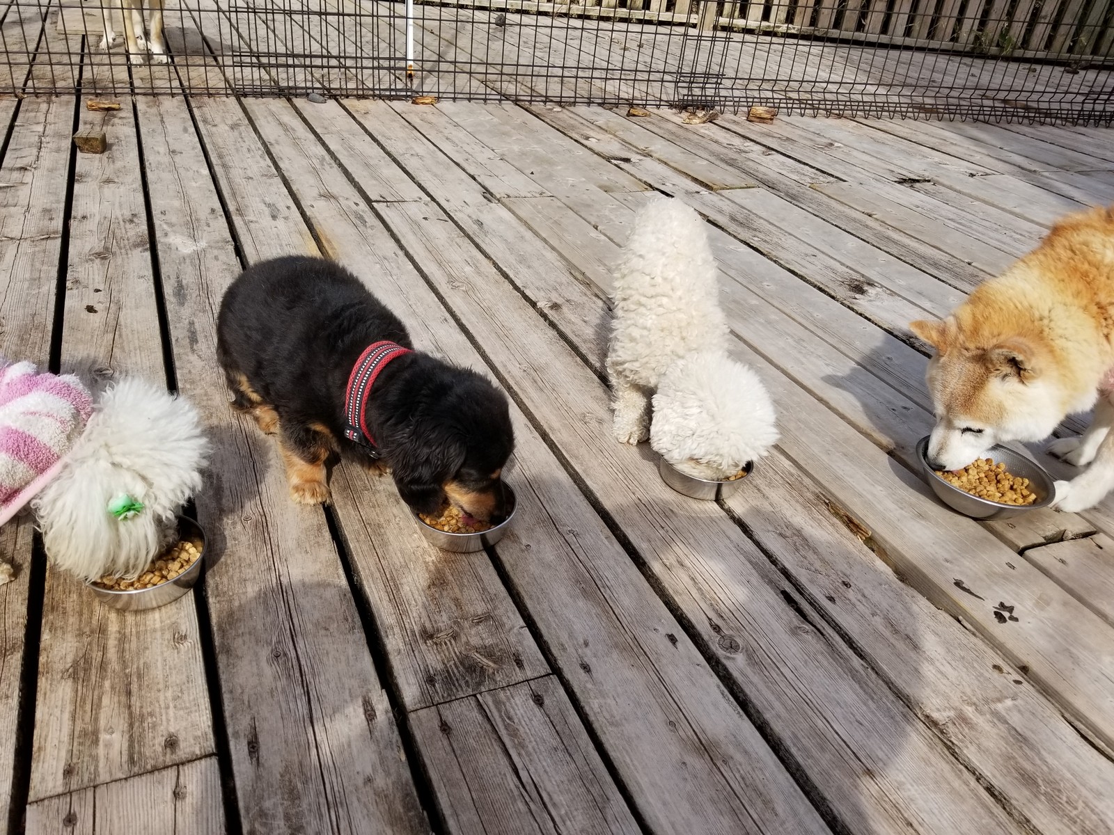 生涯預かり柴凛ちゃんと北海道犬リボンちゃん、ミックスのんちゃんとチビちゃん、しっかり完食しました。