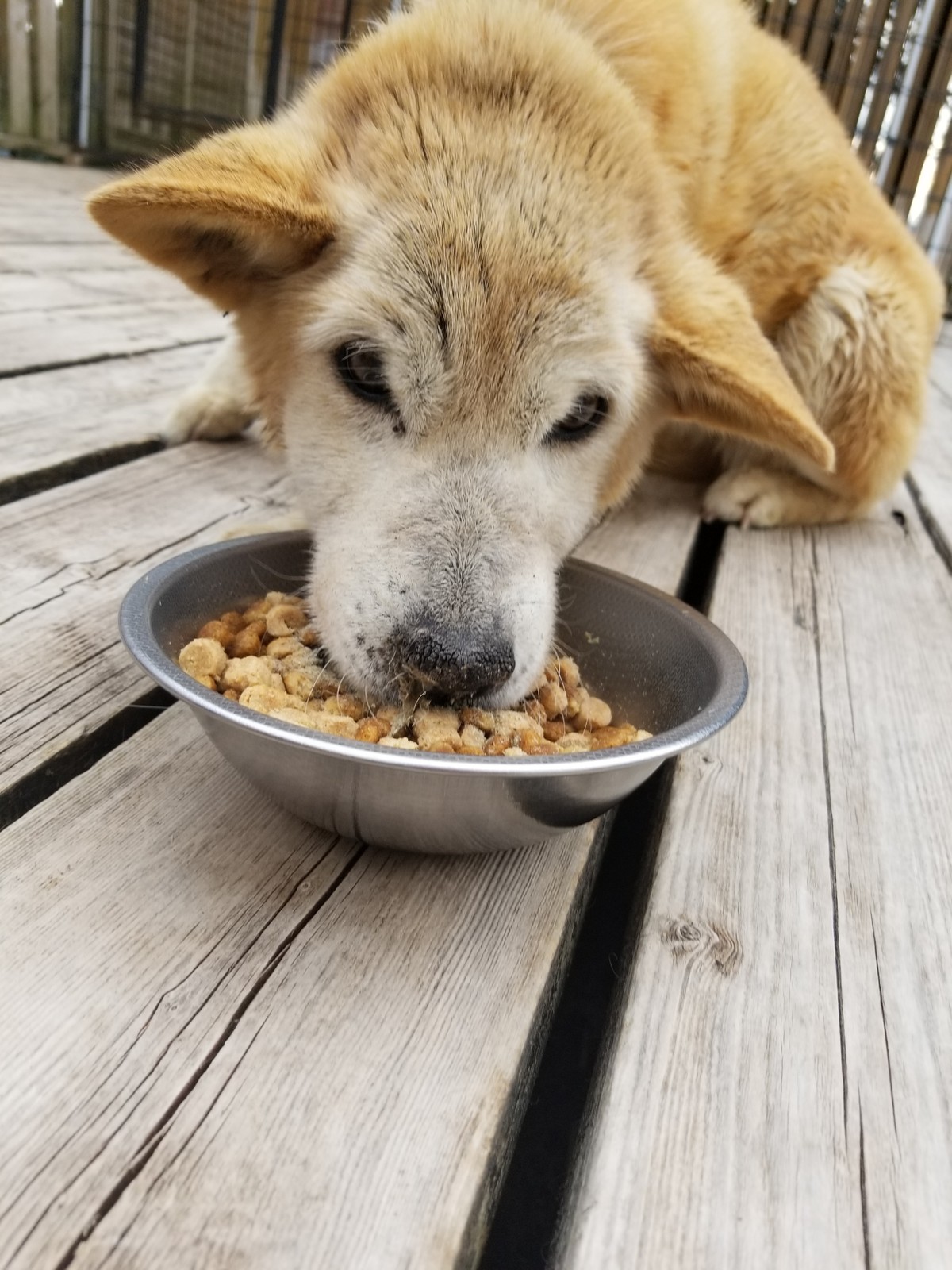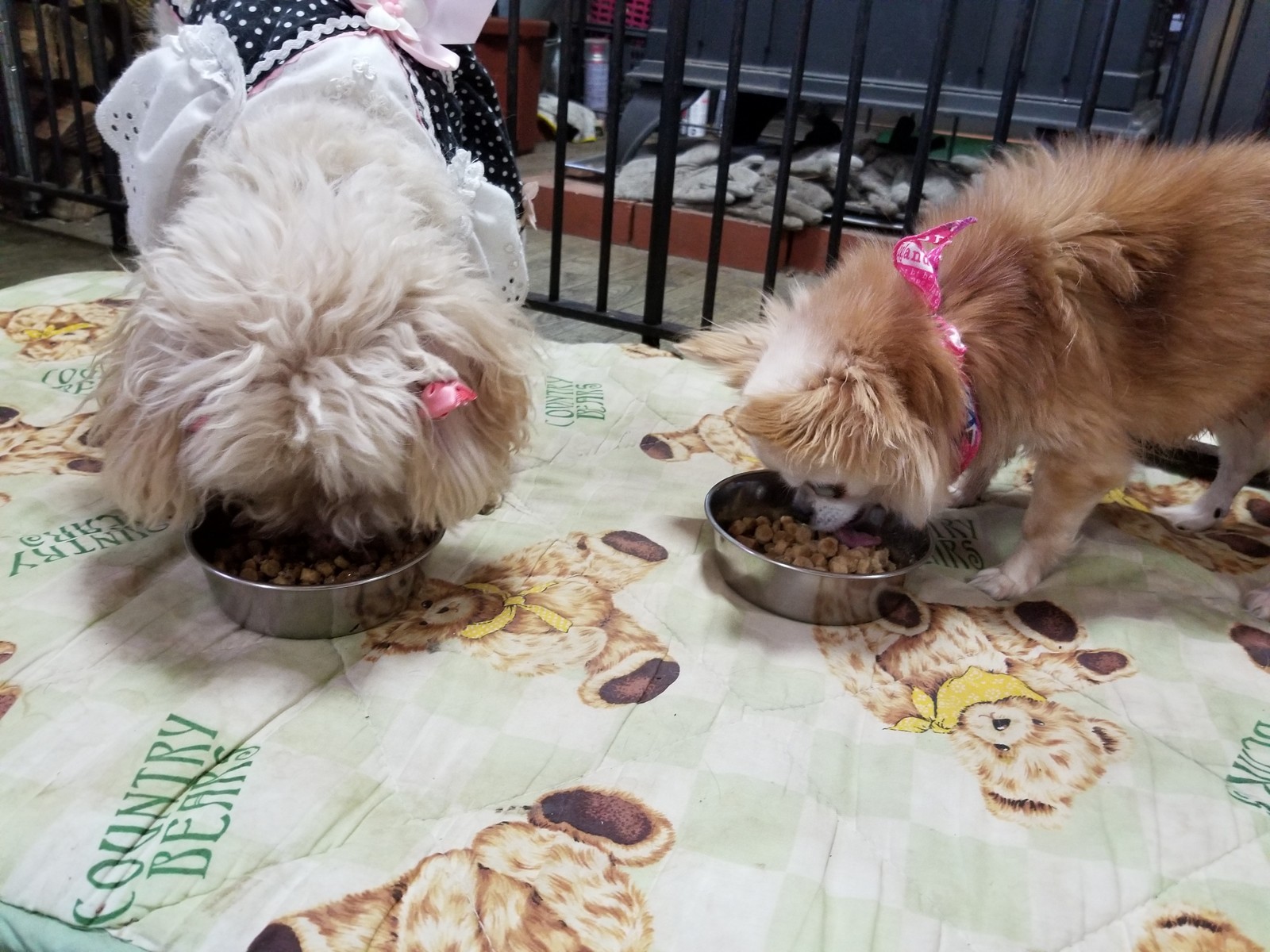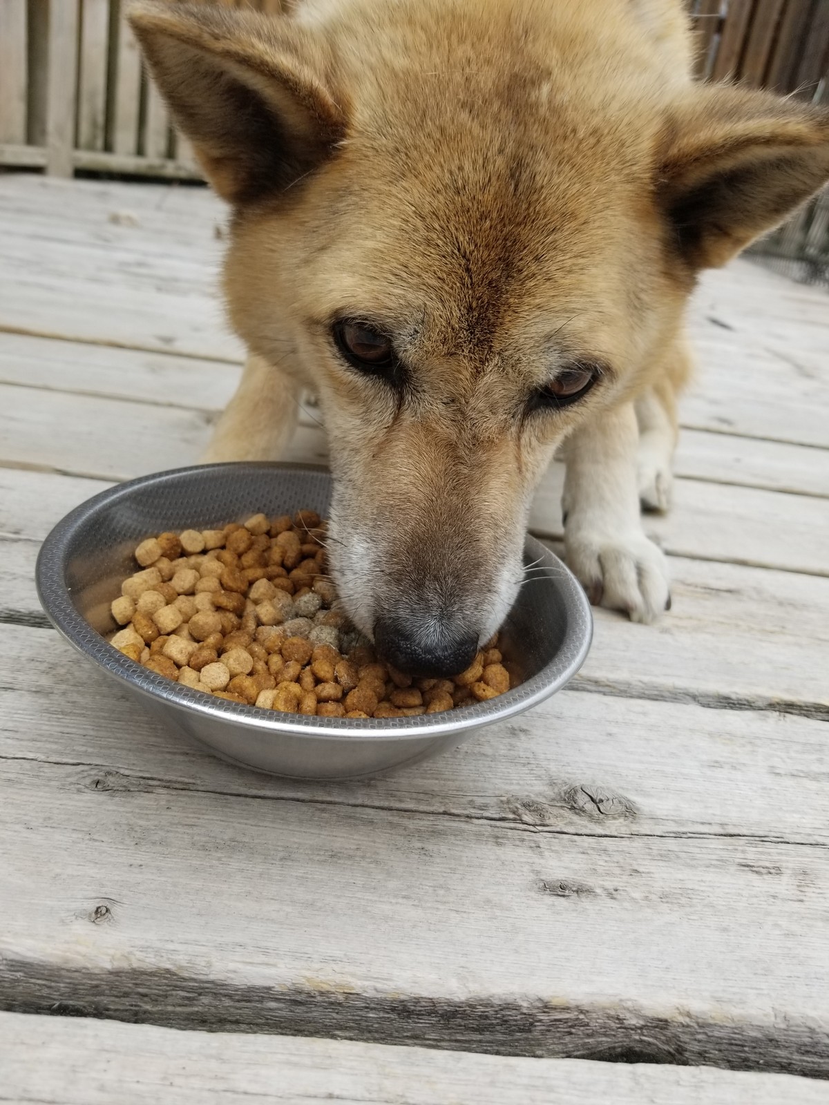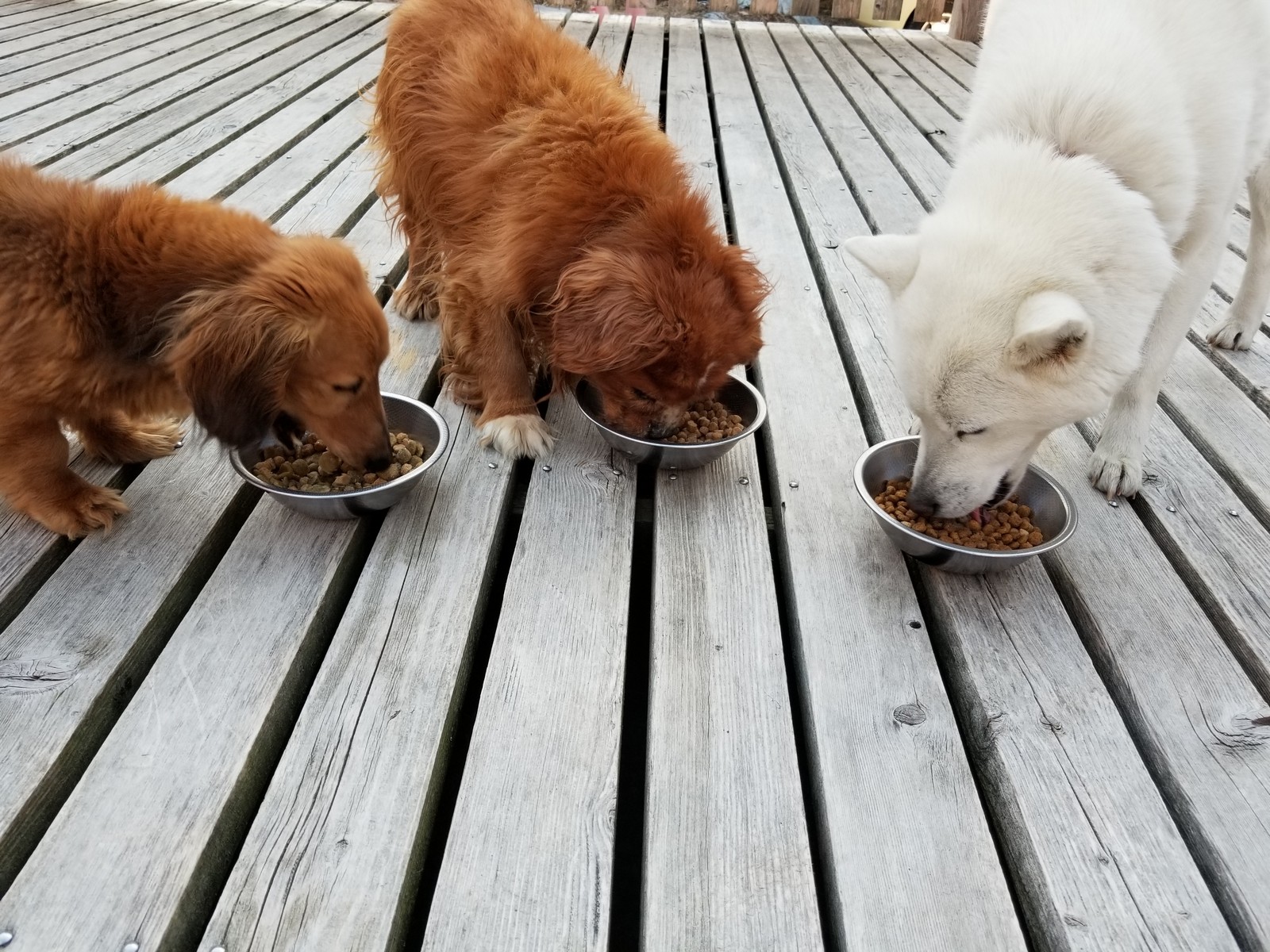 生涯預かり柴凛ちゃんと北海道犬リボンちゃん、ミックスのんちゃんとチビちゃん、しっかり完食しました。