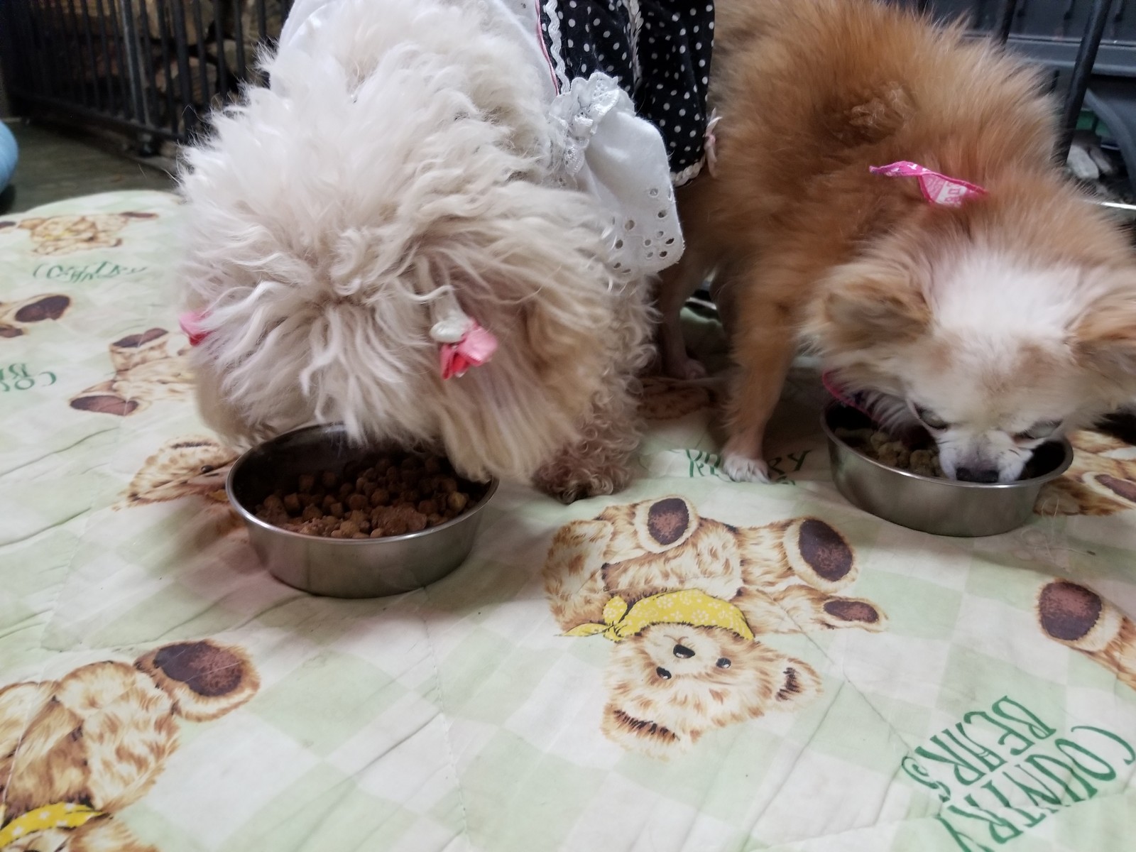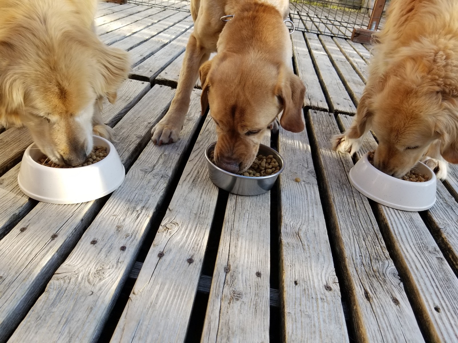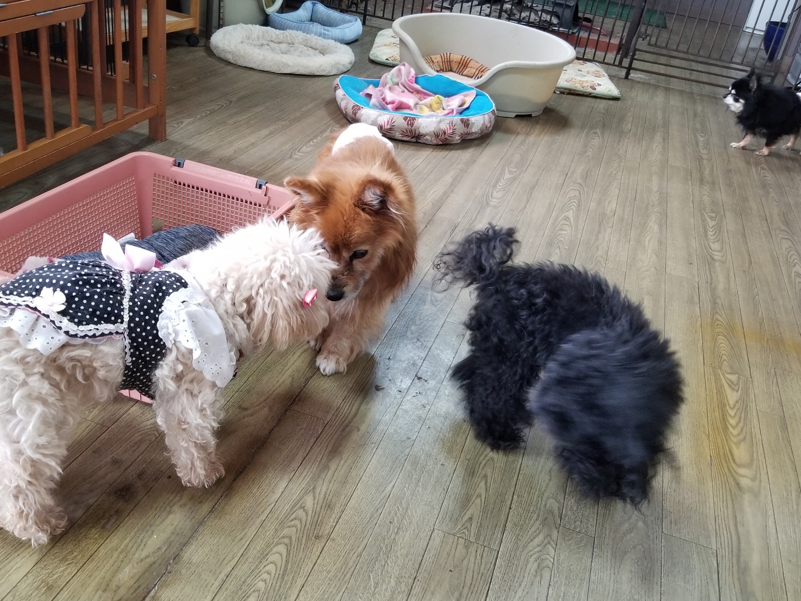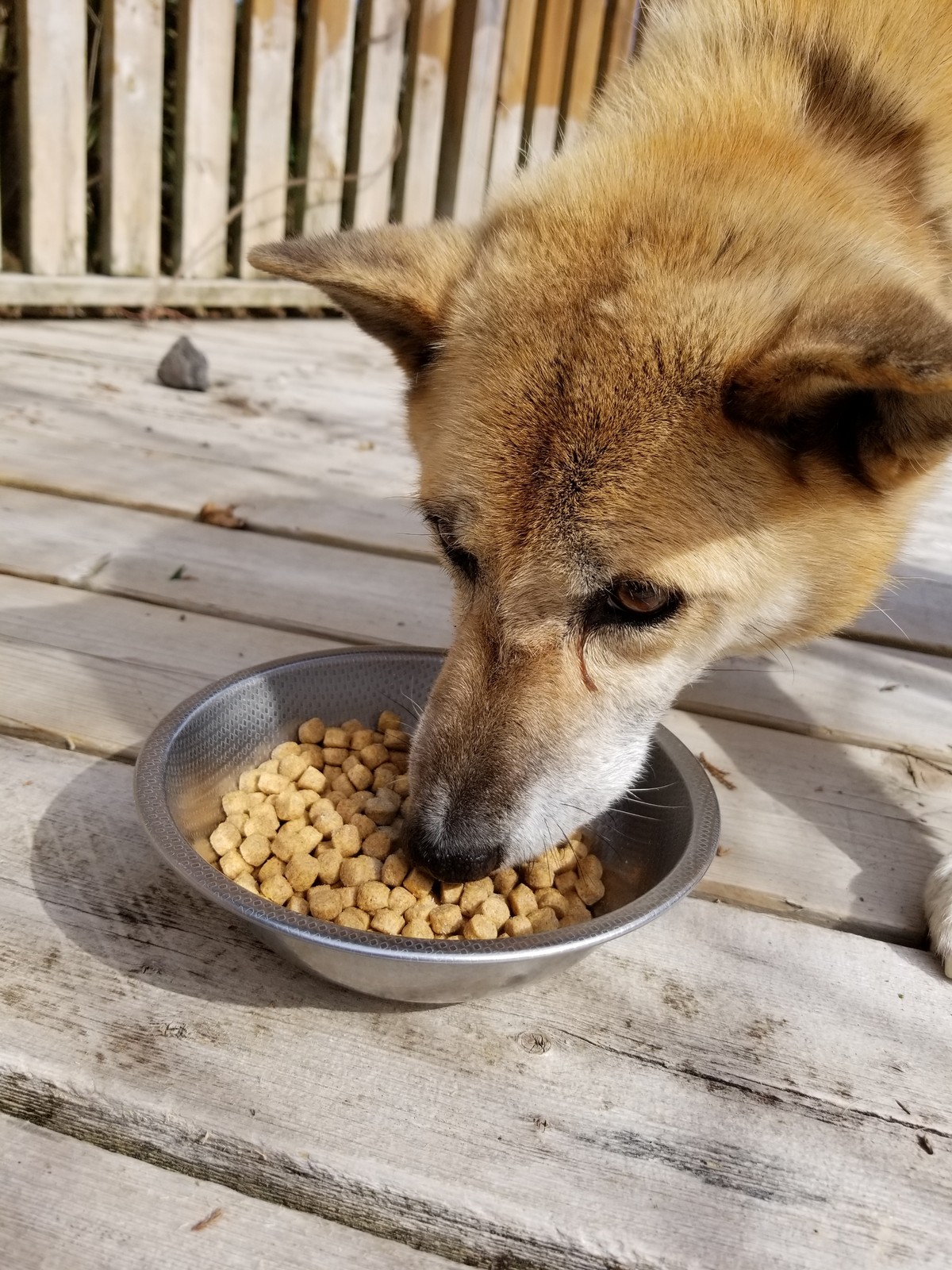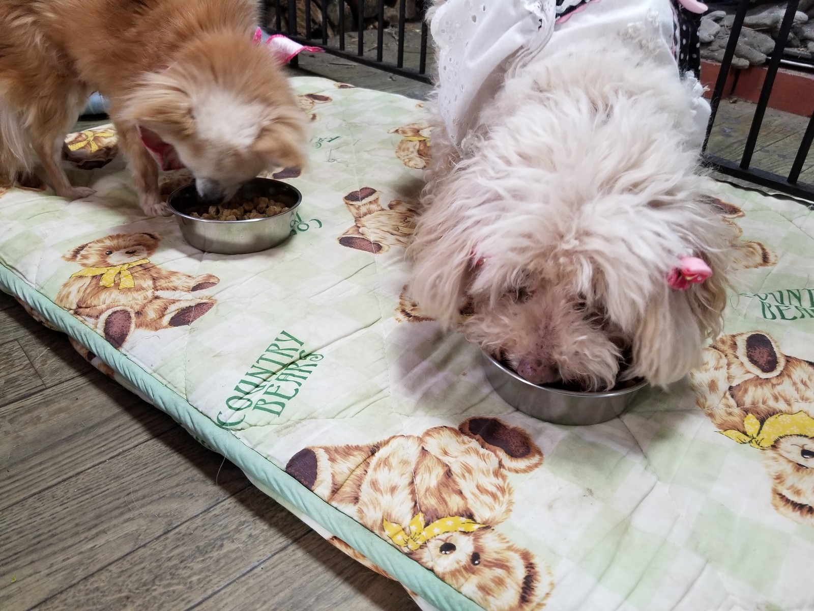 生涯預かり柴凛ちゃんと北海道犬リボンちゃん、ミックスのんちゃんとチビちゃん、しっかり完食しました。