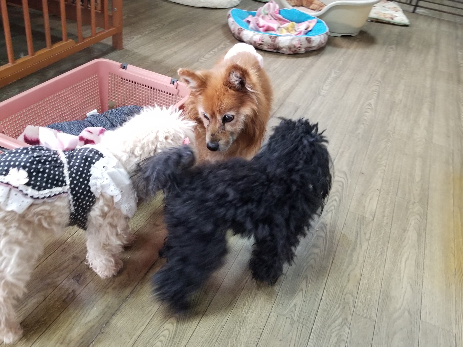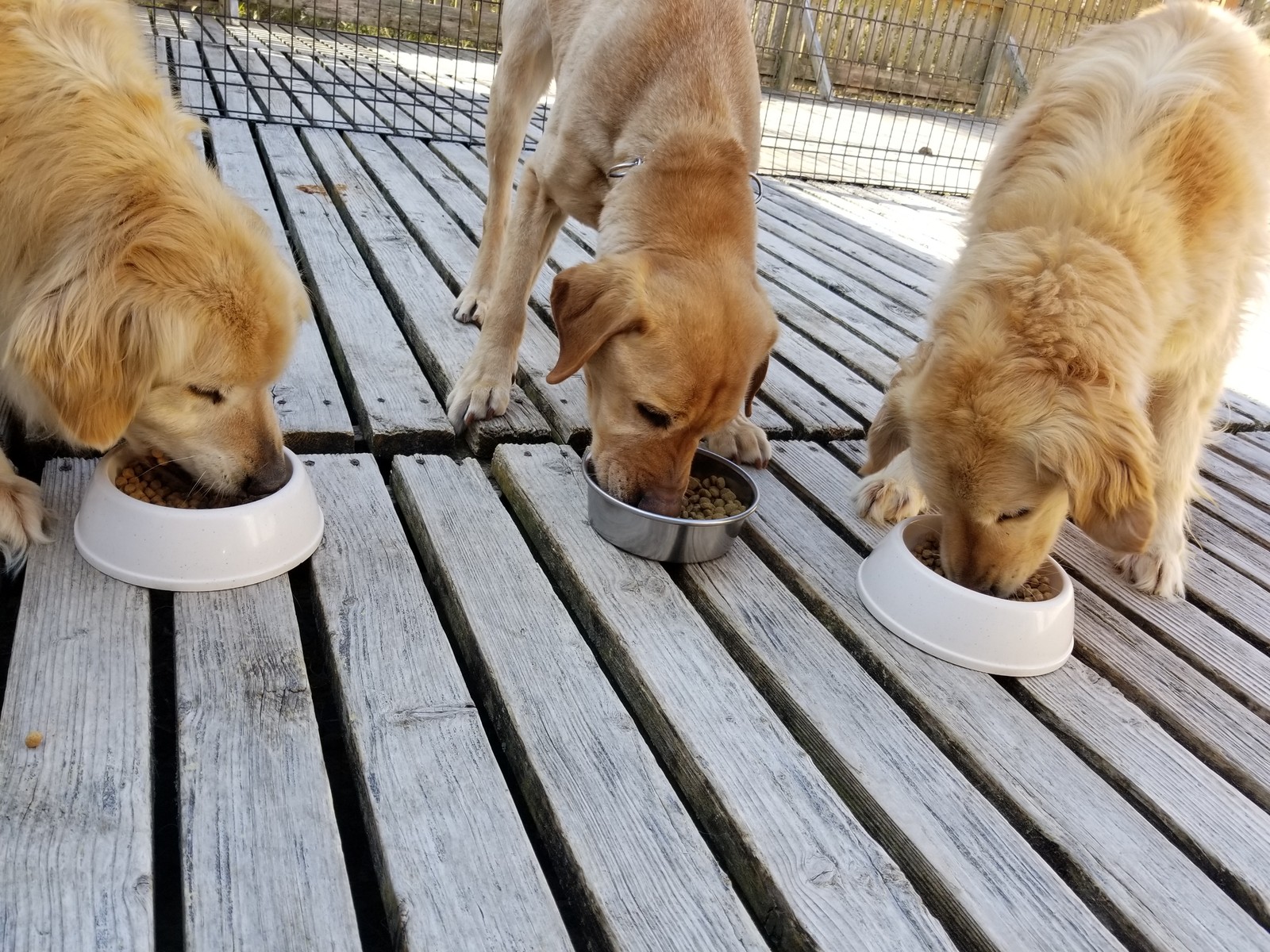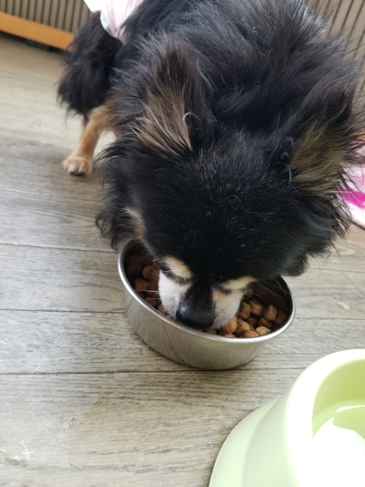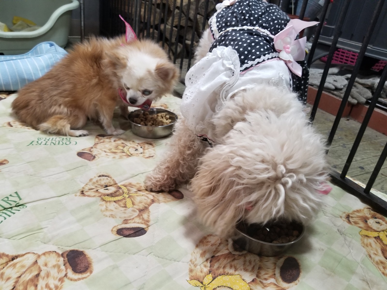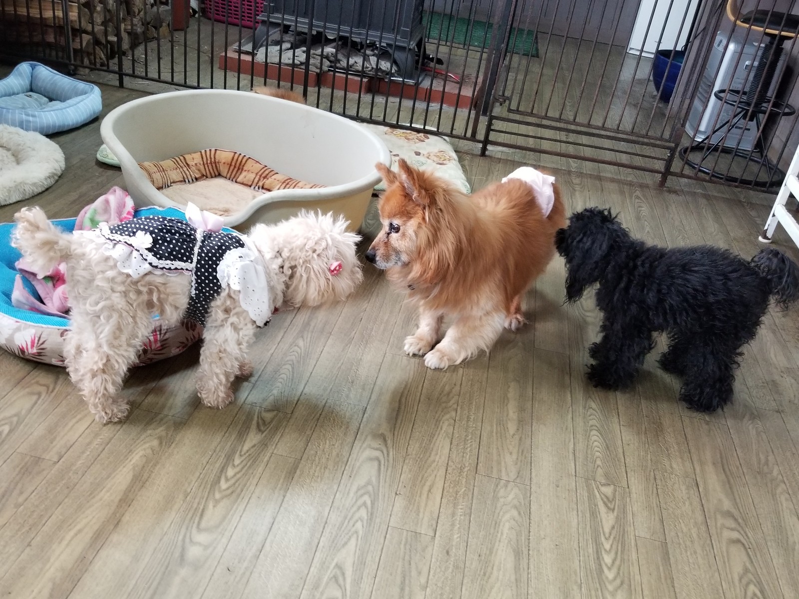生涯預かり柴凛ちゃんと北海道犬リボンちゃん、ミックスのんちゃんとチビちゃん、しっかり完食しました。