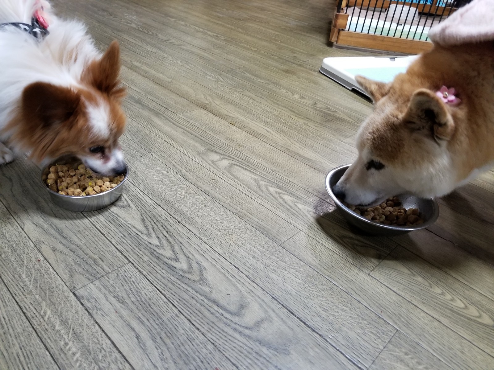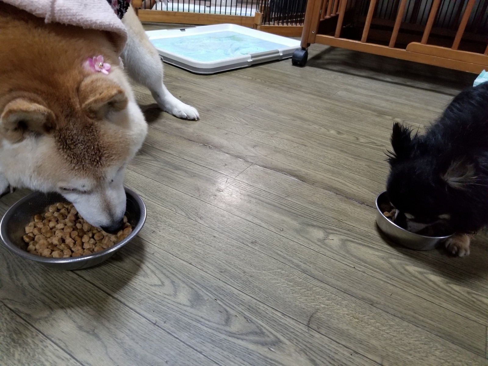 生涯お預かり柴犬凜ちゃん、北海道犬リボンちゃんしっかり完食しました。