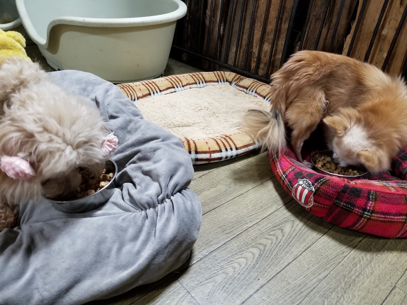 生涯お預かりトイプーベラちゃん、パピヨンパピーくんしっかり完食しました。