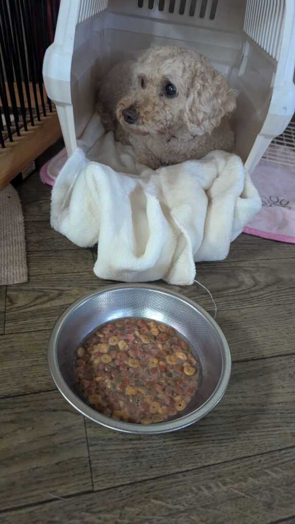 生涯お預かりトイプーコタローくん口をつけませんでした。昨晩のは食べてありました。