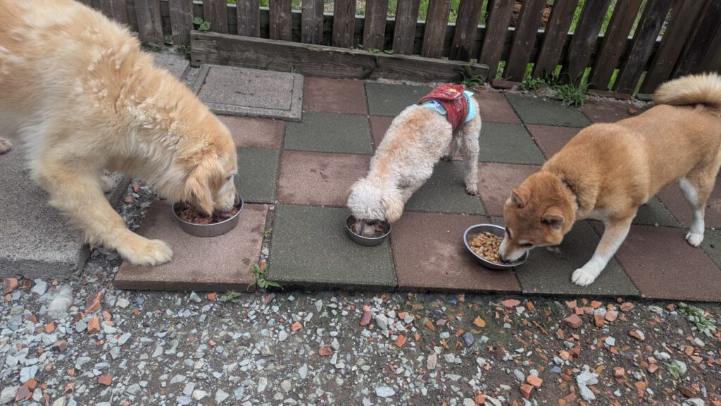 長期お預かりトイプーララくん、ゆずちゃん、ミックスチビちゃん、柴犬リキくんしっかり完食しました。