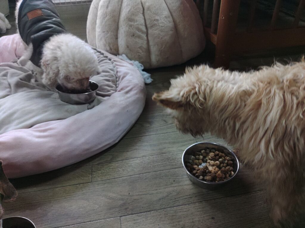 生涯お預かりミックスサスケくん、ココちゃん、柴犬ハルちゃん、マルプーらんまるくん、ボルゾイはなこちゃんしっかり完食しました。