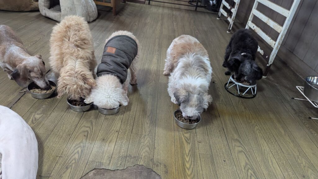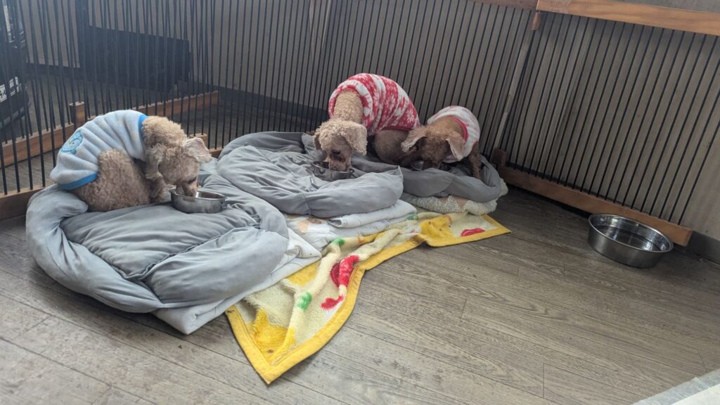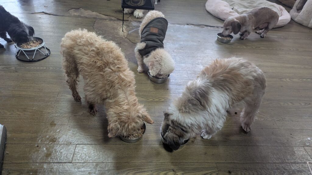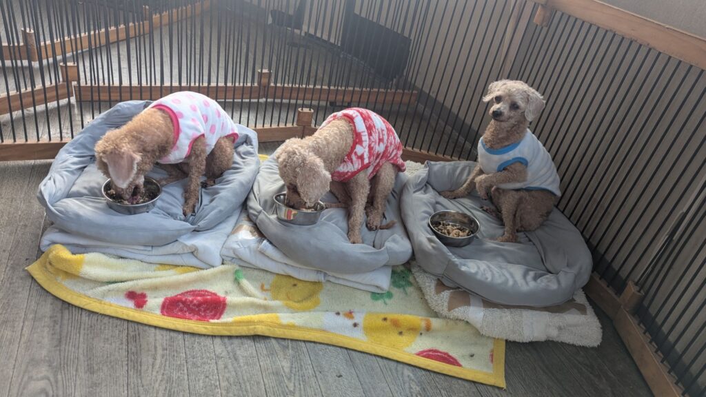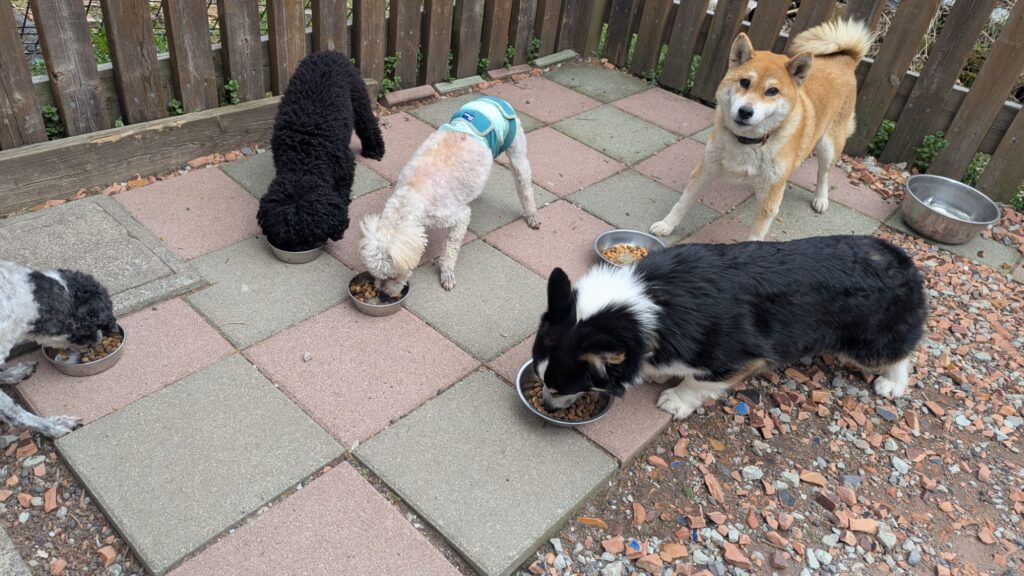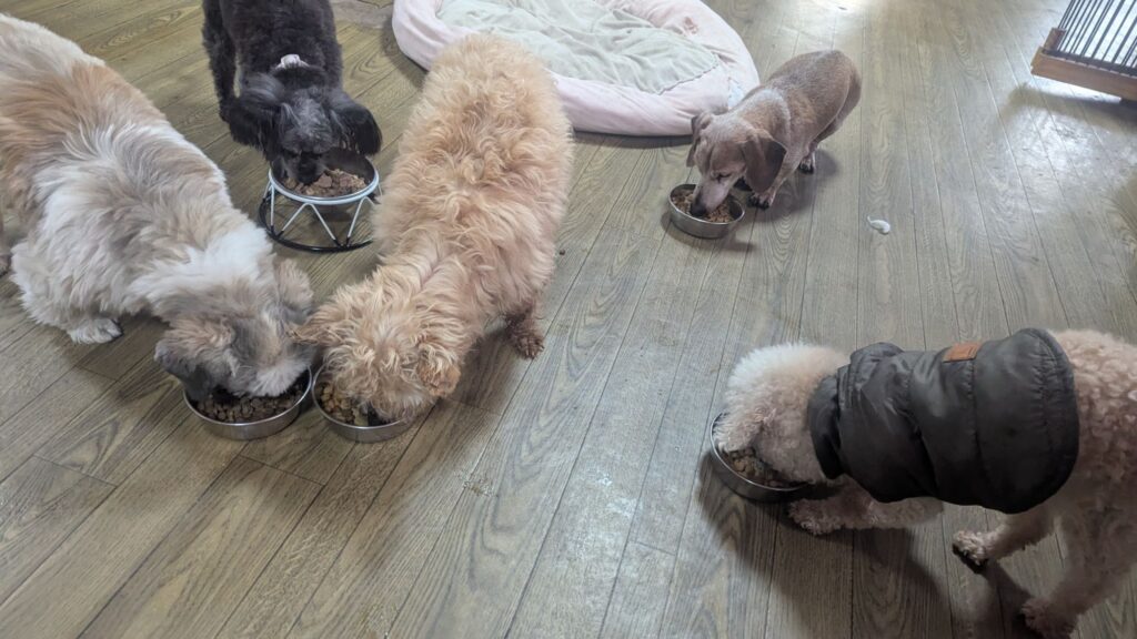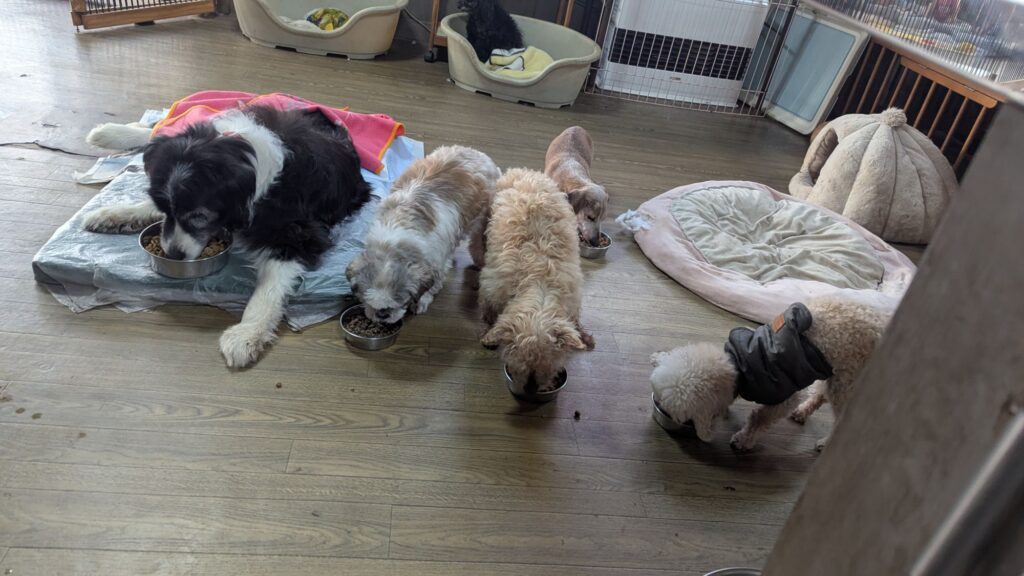 生涯お預かりミックスサスケくん、ココちゃん、柴犬ハルちゃん、マルプーらんまるくん、ボルゾイはなこちゃんしっかり完食しました。