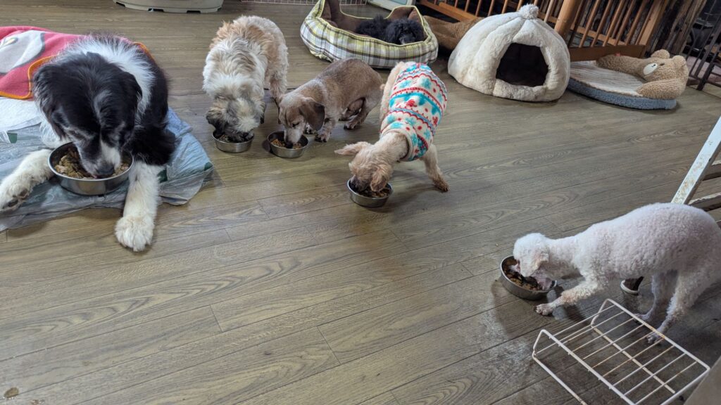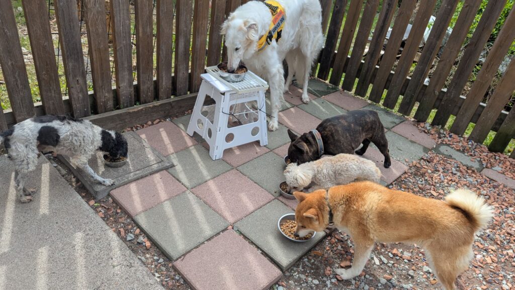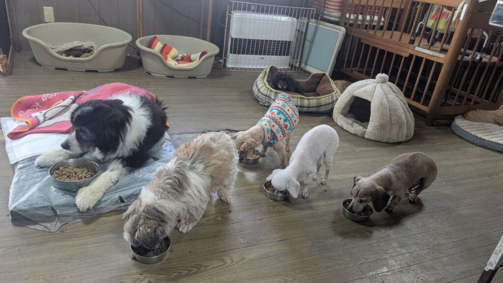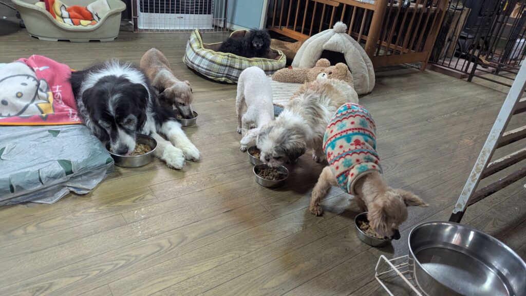 生涯お預かりミックスサスケくん、柴犬ハルちゃん、マルプーらんまるくん、ボルゾイはなこちゃんしっかり完食しました。