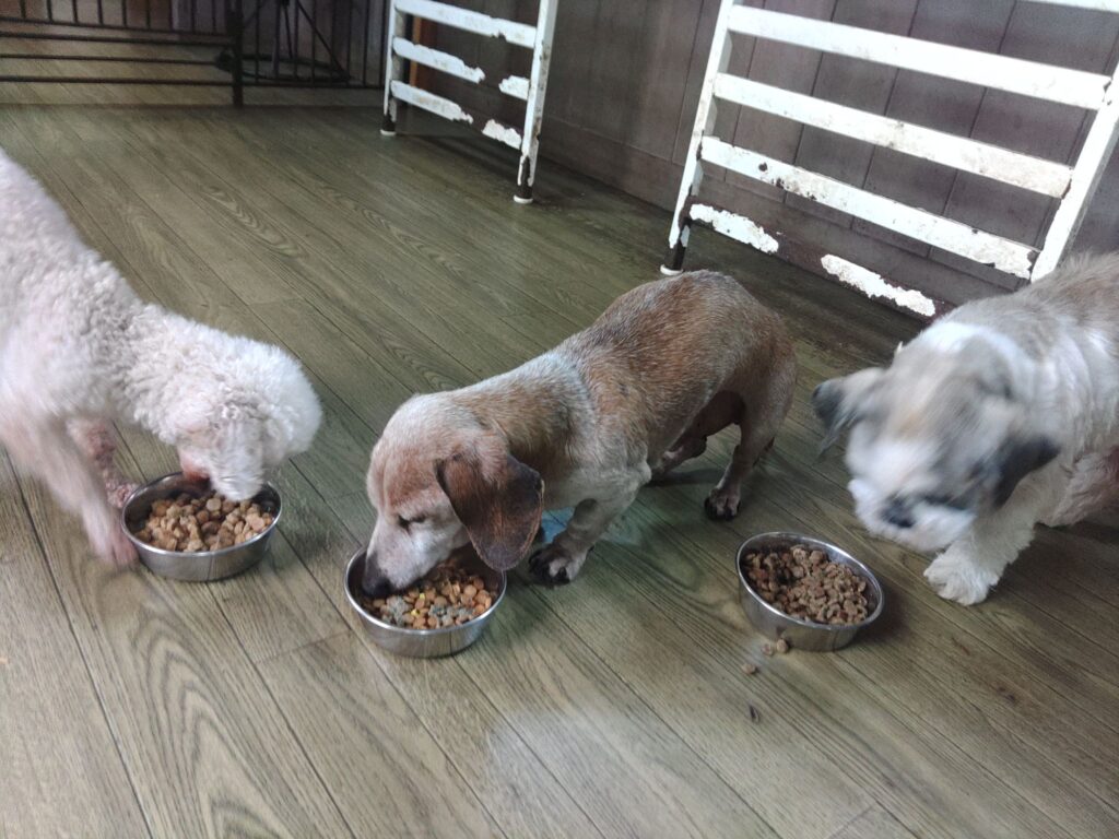 生涯お預かりミックスサスケくん、柴犬ハルちゃん、マルプーらんまるくん、ボルゾイはなこちゃんしっかり完食しました。