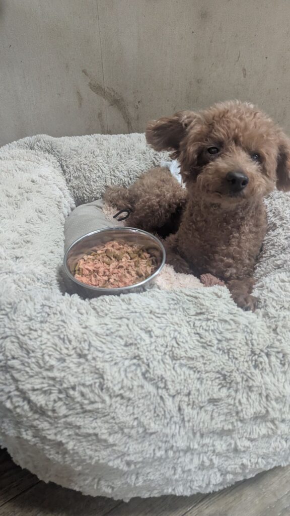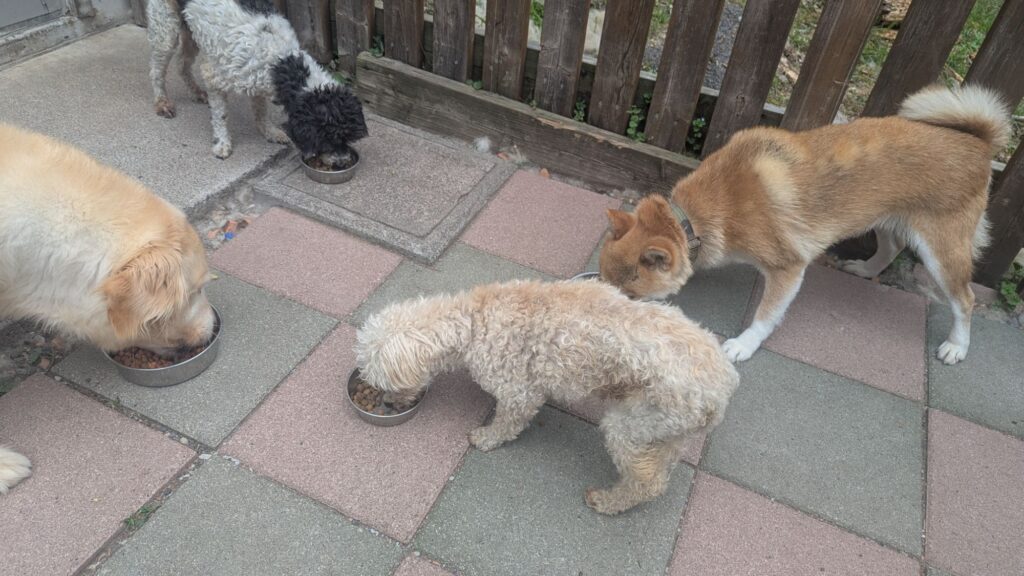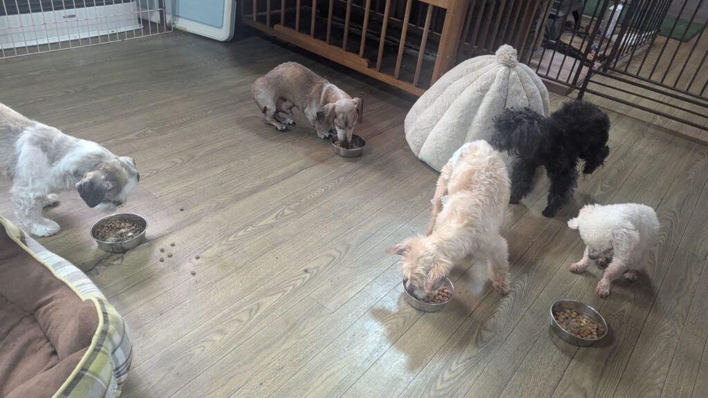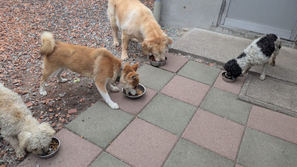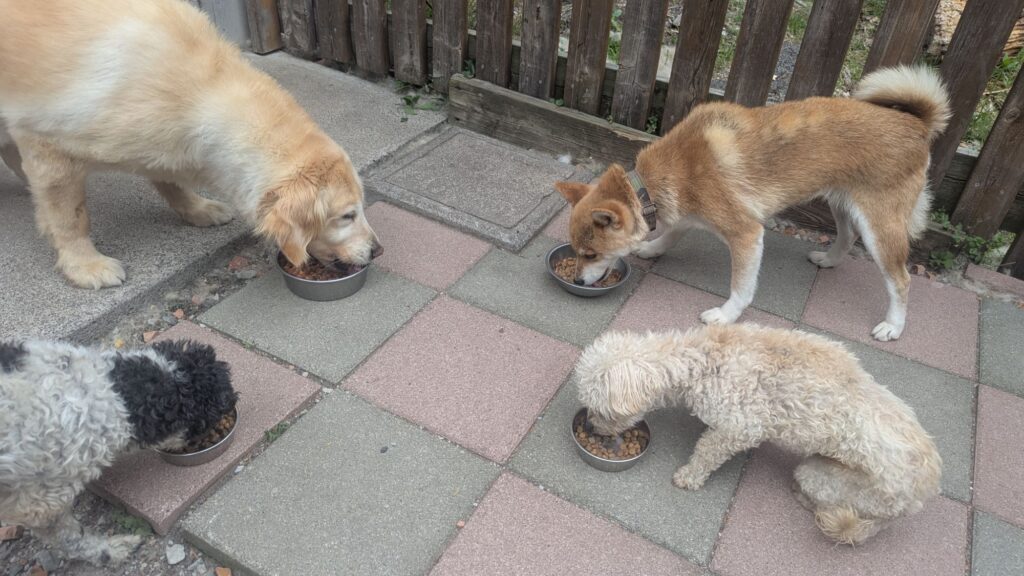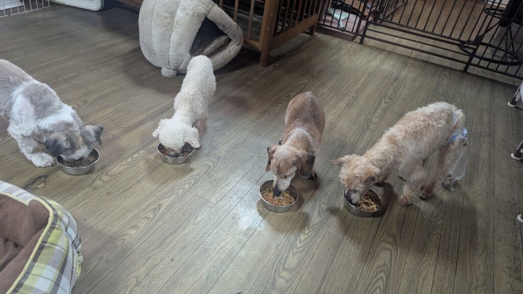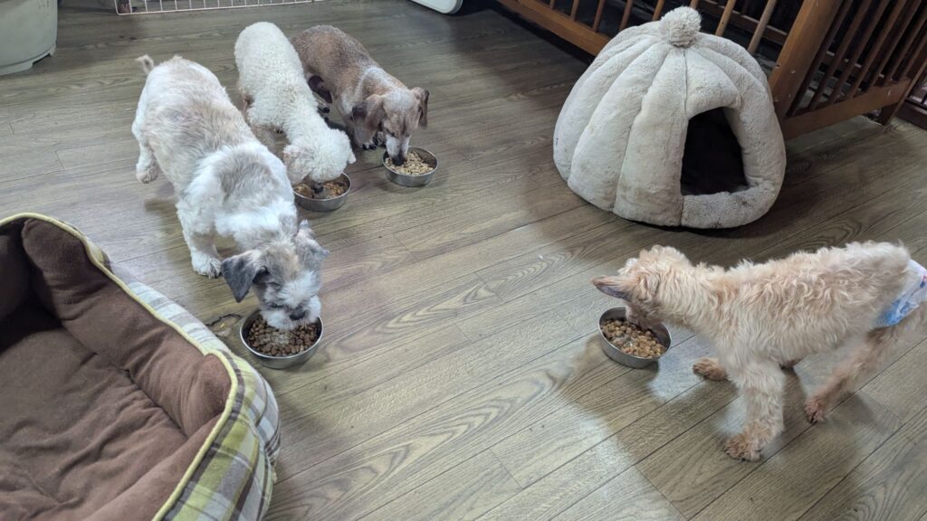 生涯お預かりミックスサスケくん、柴犬ハルちゃん、マルプーらんまるくん、ボルゾイはなこちゃんしっかり完食しました。