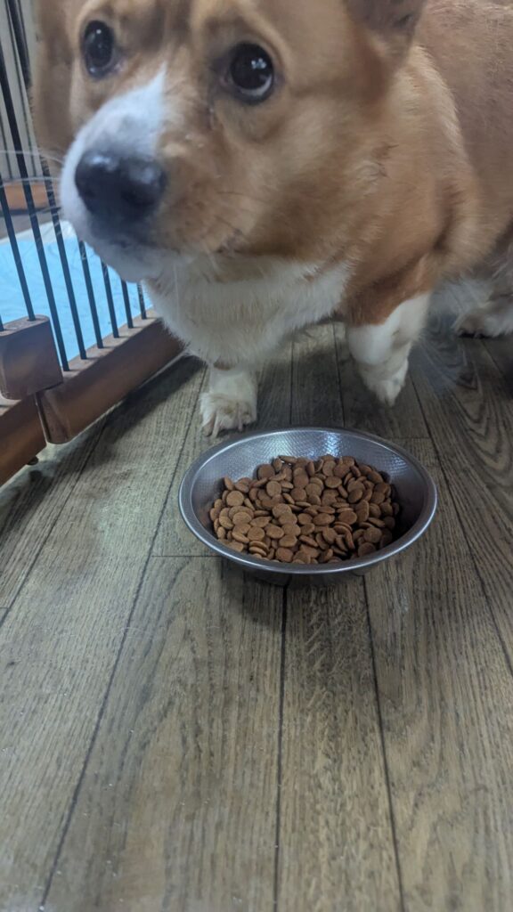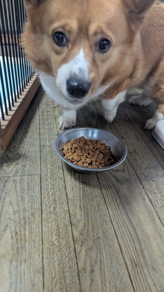 コーギーリリィちゃん口をつけませんでした。昨晩のは完食してありました。