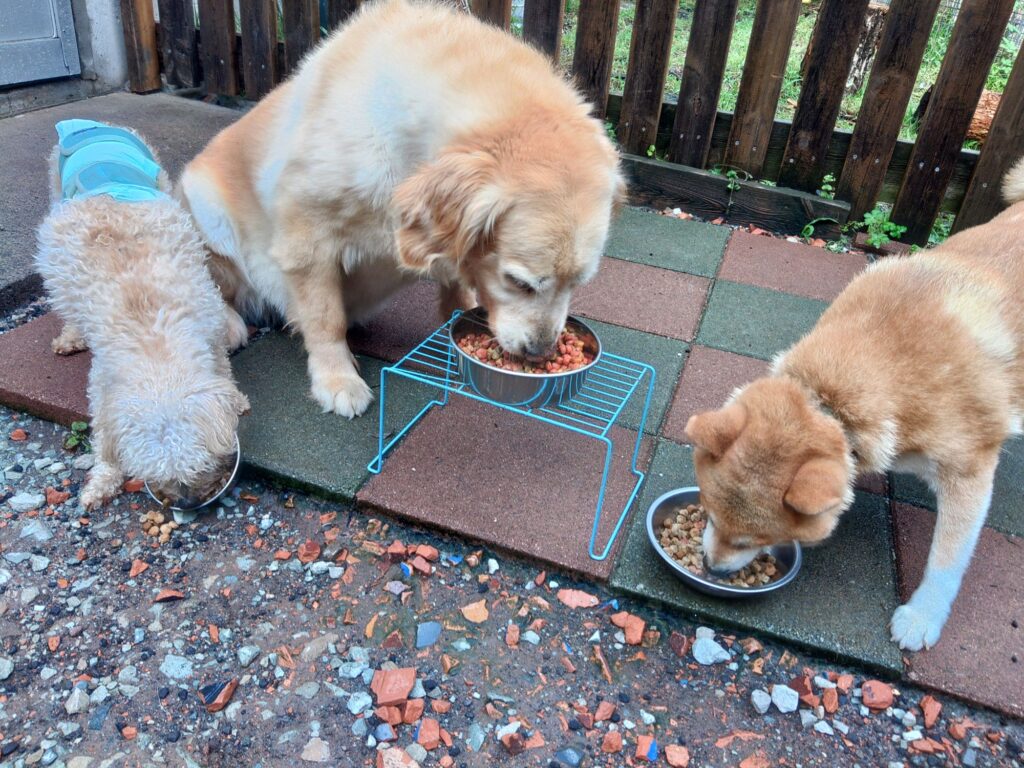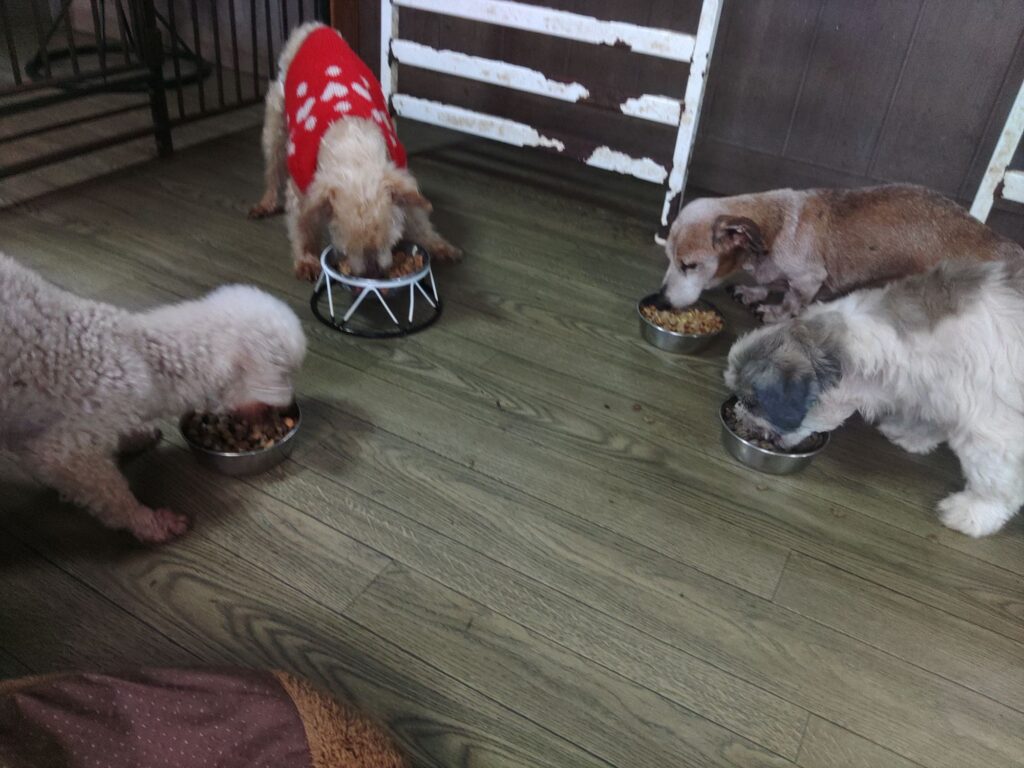 生涯お預かりミックスサスケくん、柴犬ハルちゃん、マルプーらんまるくん、ボルゾイはなこちゃんしっかり完食しました。