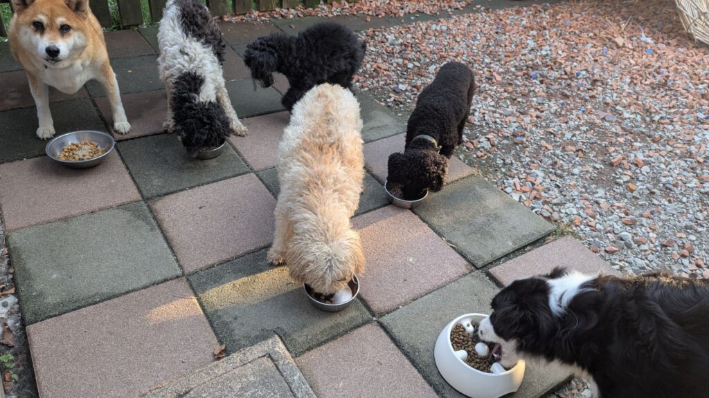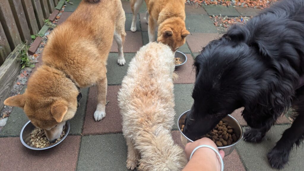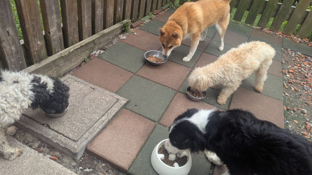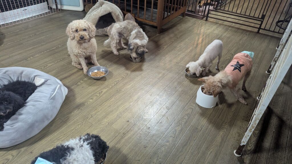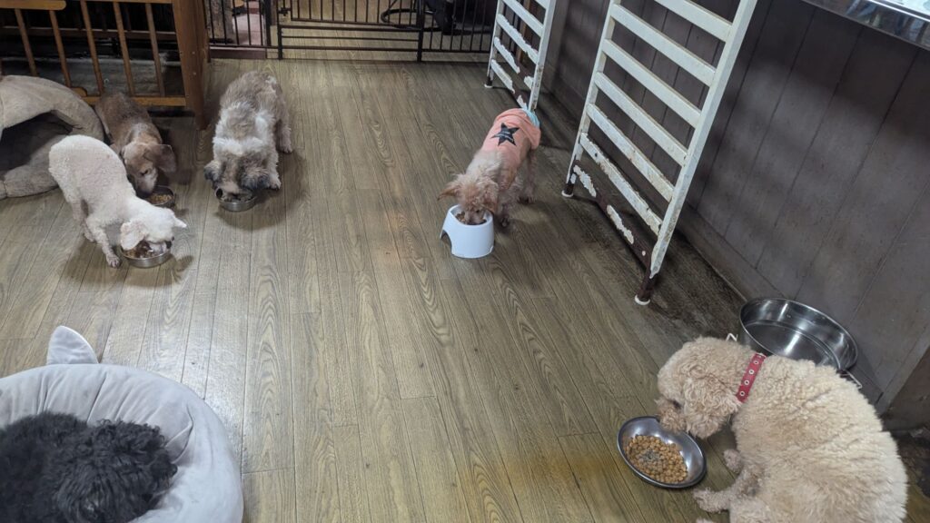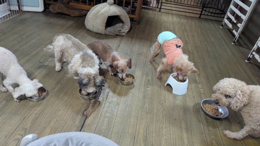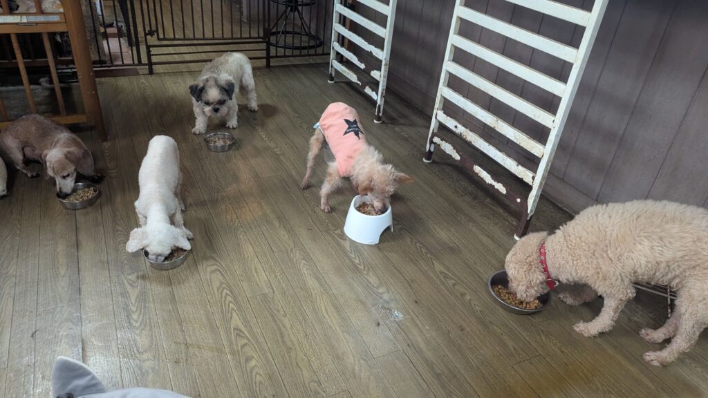 生涯お預かりミックスサスケくん、柴犬ハルちゃん、マルプーらんまるくん、ボルゾイはなこちゃんしっかり完食しました。